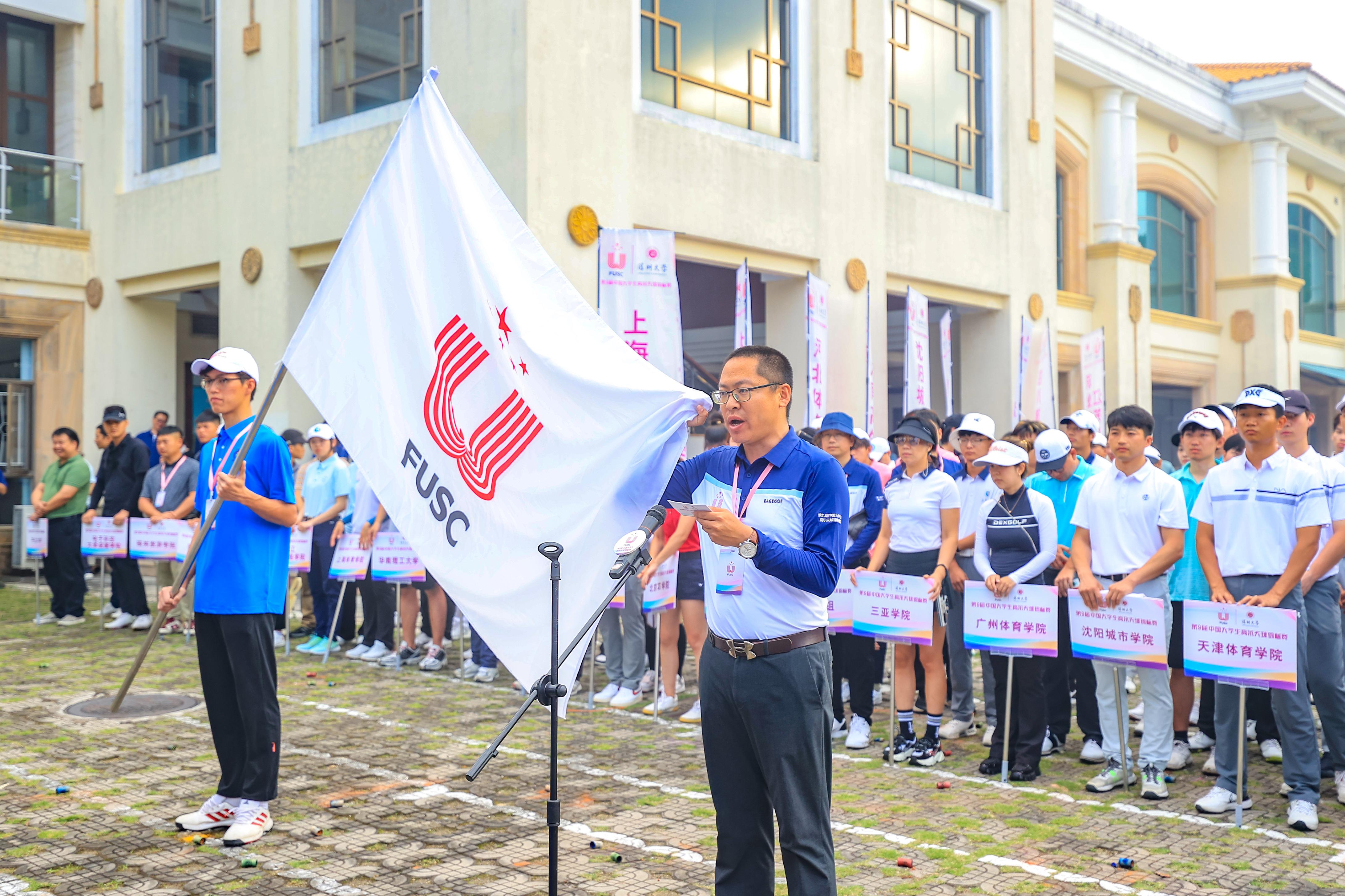 乐竞平台副校长张晓红,乐竞平台体育学院党委书记、高尔夫学院院长姚正武,中国大学生体育协会项目主管田靖夫,阳江涛景高尔夫球会总经理黄和峰,深圳市高尔夫球协会副秘书长邓汉敏,高尔夫球国际级裁判、本届赛事裁判长白东哲等嘉宾出席开幕式。
