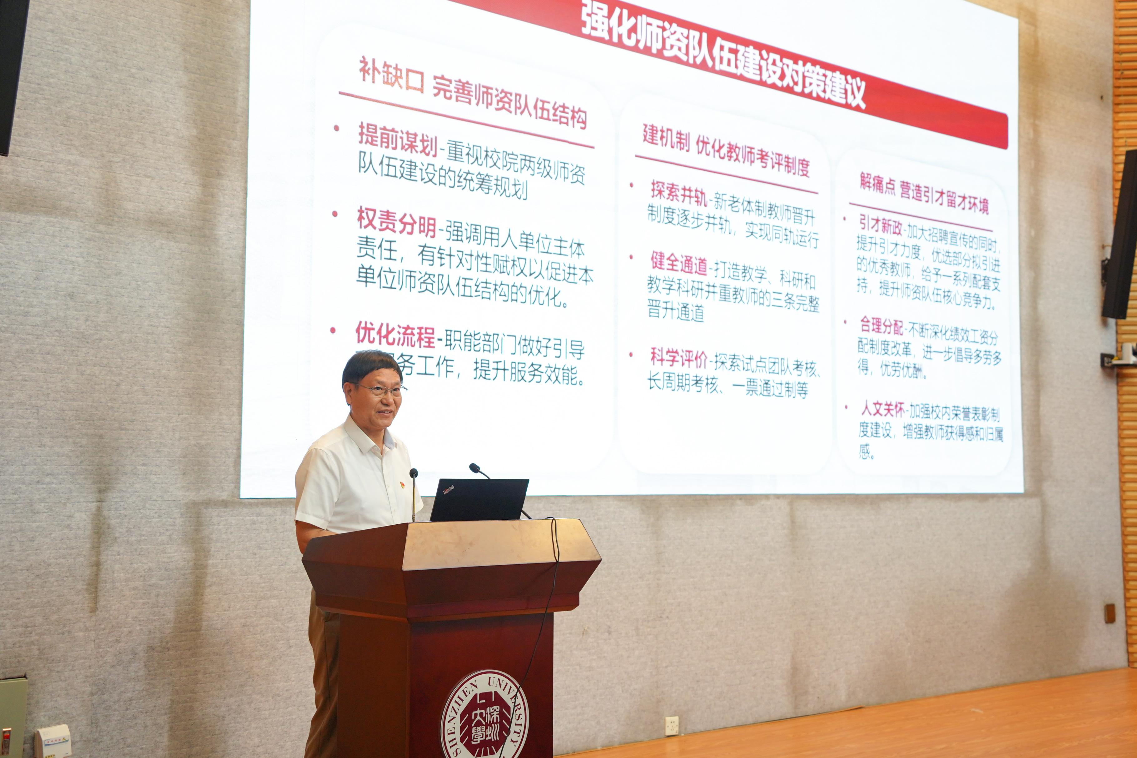 校长毛军发简要通报学校主题教育调查研究开展情况。自4月12日学校主题教育开展以来,在省委第十九巡回指导组的精心指导下,学校党委认真学习贯彻习近平总书记系列重要讲话精神,紧紧围绕党中央、省委、市委关于开展主题教育和调查研究的部署要求,一体推进理论学习、调查研究、推动发展、检视整改,推动主题教育取得实实在在的成效。学校党委坚持把开展调查研究作为发现问题、研究问题、解决问题的重要途径,专门研究制定《在全校深入开展调查研究工作方案》和《乐竞平台校领导 党委常委开展调查研究工作安排》,大兴调查研究之风,聚焦制约学校高质量发展的短板瓶颈和薄弱环节,沉到一线开展对策性调研、解剖式调研、督查式调研,形成了一批调研成果。