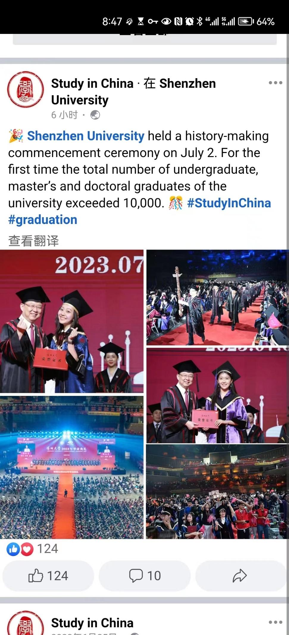 【Study in China(中国日报脸书垂直账号)】Shenzhen University held a history-making commencement ceremony on July 2