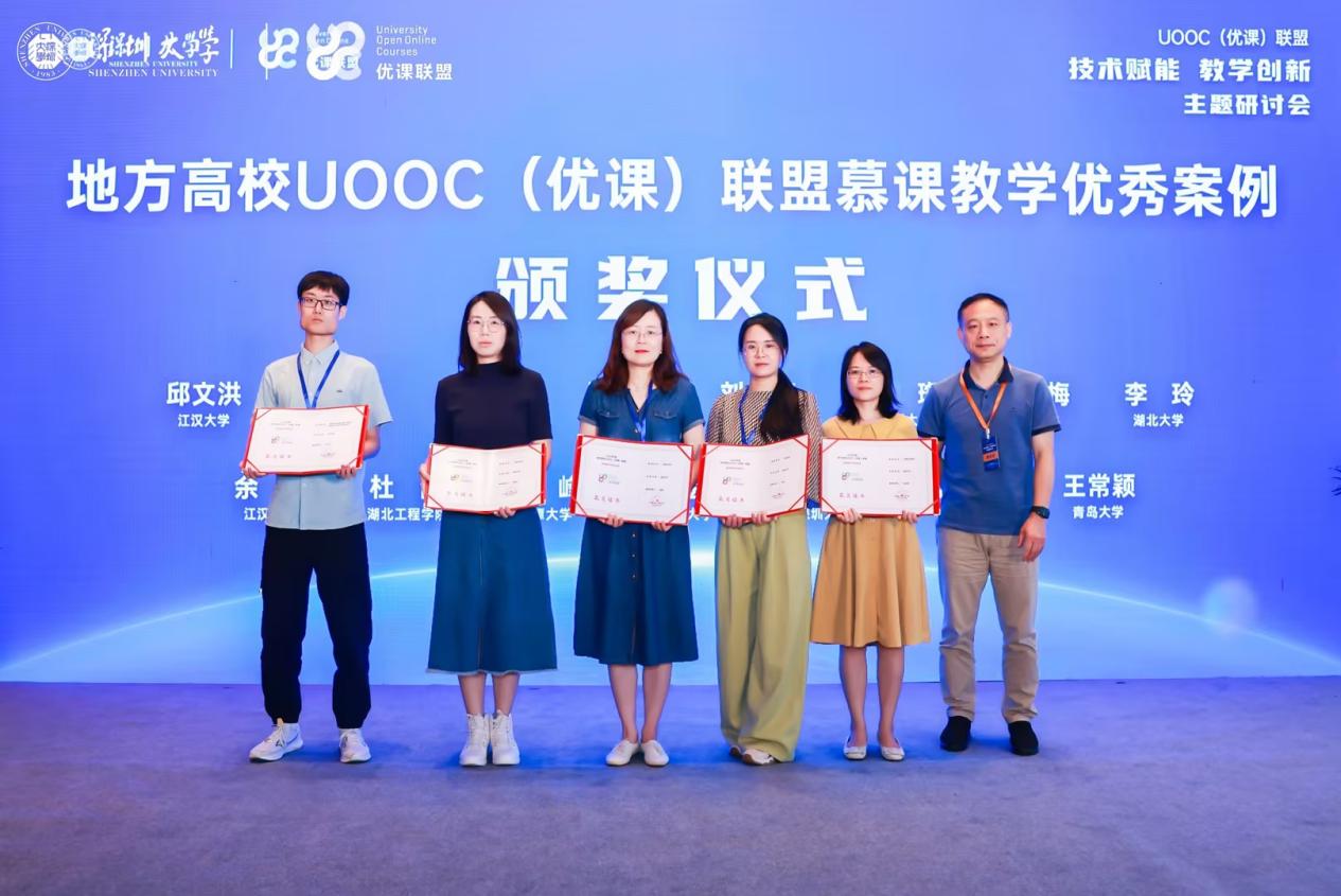 张晓红和杨九民为获得“优课联盟慕课教学优秀案例”奖的30位获奖教师颁奖。慕课教学优秀案例获奖教师代表、乐竞平台副教授罗莎老师讲述了优课联盟对教师教学上的支持。
