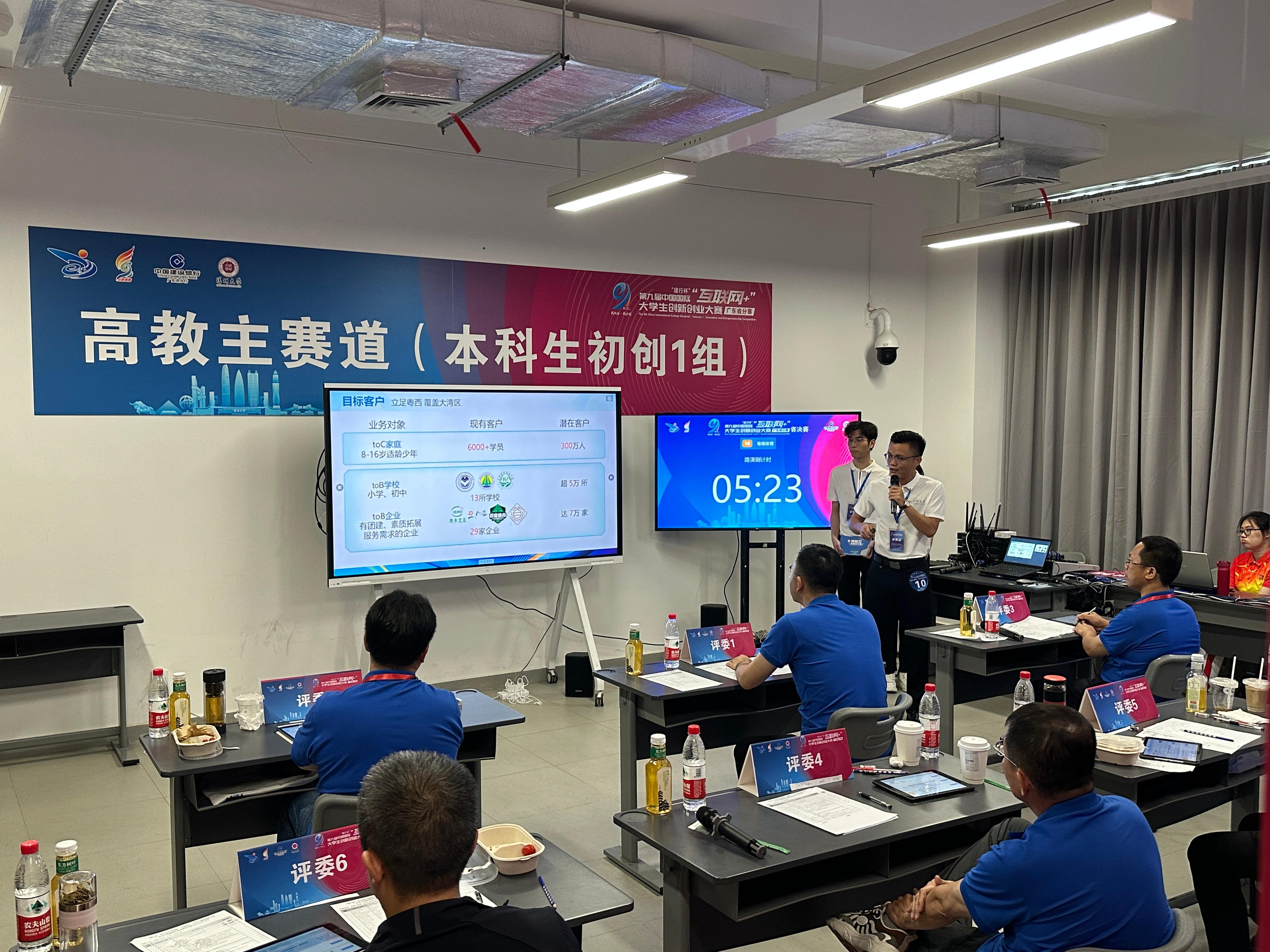 高教主赛道本科生创意组3组的“锐捷科仪”项目来自华南师范大学,项目最初起源于创始人的一次因为莫名心悸去医院就诊的经历。他发现要实现心脑血管疾病的全面评估,所需要的抽血检查量是非常大的;与此同时,他在课题组了解到石英晶体微天平这一新兴技术有望解决心脑血管疾病的痛点,于是就想研发出一种高通量的生化分析仪,实现一台仪器一管血能够完成对心脑血管5大类32种指标的实时监测和分析。“锐捷科仪”项目团队历经三年,从研发到产品验证产品实践,才走到了“互联网+”广东省赛的赛场上,他们希望聚焦社会痛点,通过新兴技术提高心脑血管疾病检测的效率。“深大为参赛选手提供了非常完备的赛事服务与比赛环境,让我们能够安心备赛。”项目主创人员陈舒仪说。