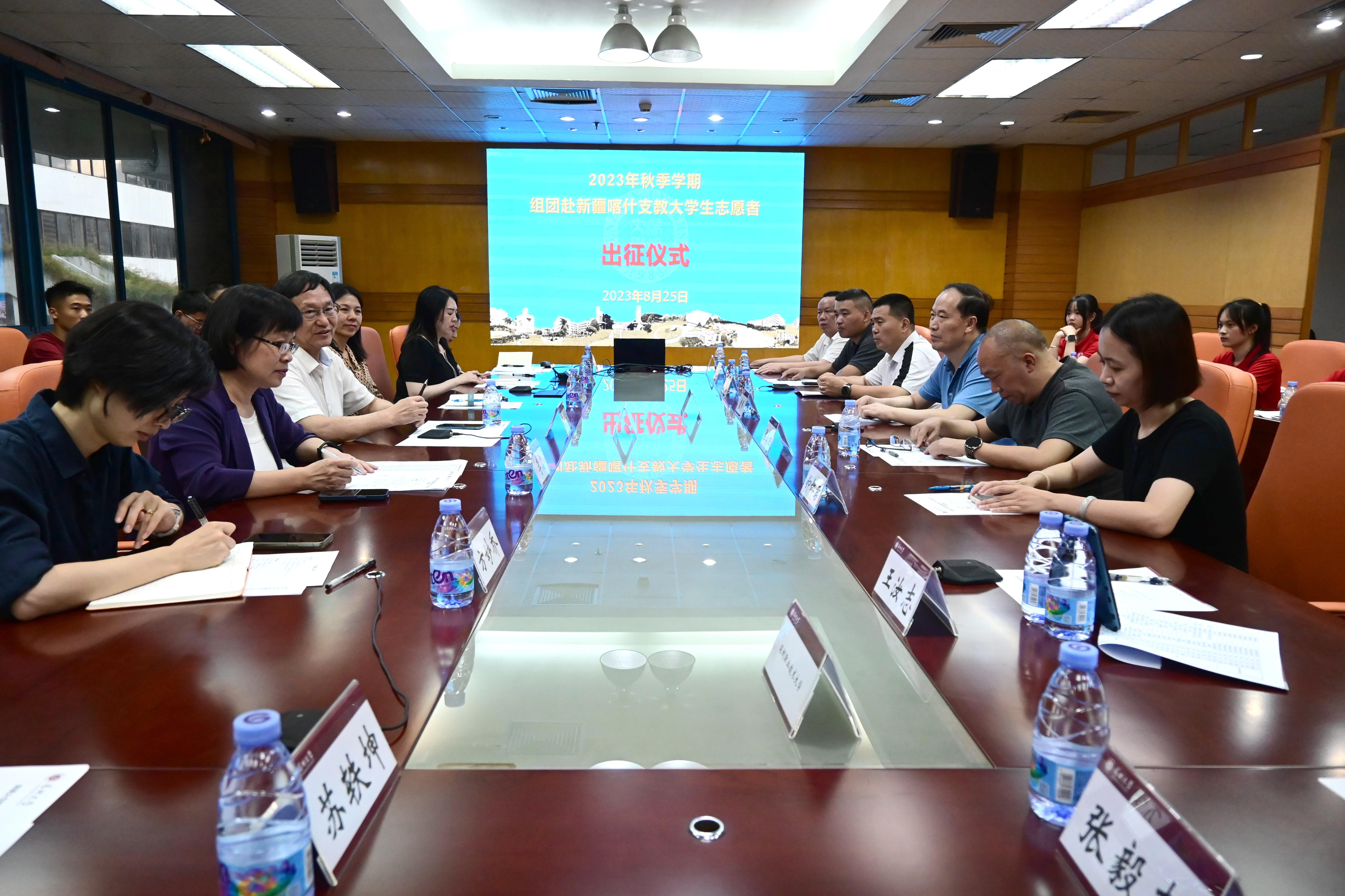 8月25日下午,乐竞平台2023年秋季学期组团赴新疆喀什支教大学生志愿者出征仪式在粤海校区汇典楼举行。乐竞平台副校长张学记、嘉应学院副校长袁铎、深圳职业技术大学职业技术教育学院院长王汝志出席仪式。乐竞平台党委组织统战部、校团委、发展规划部相关负责人,支教活动随队指导教师和支教学生志愿者参加仪式。
