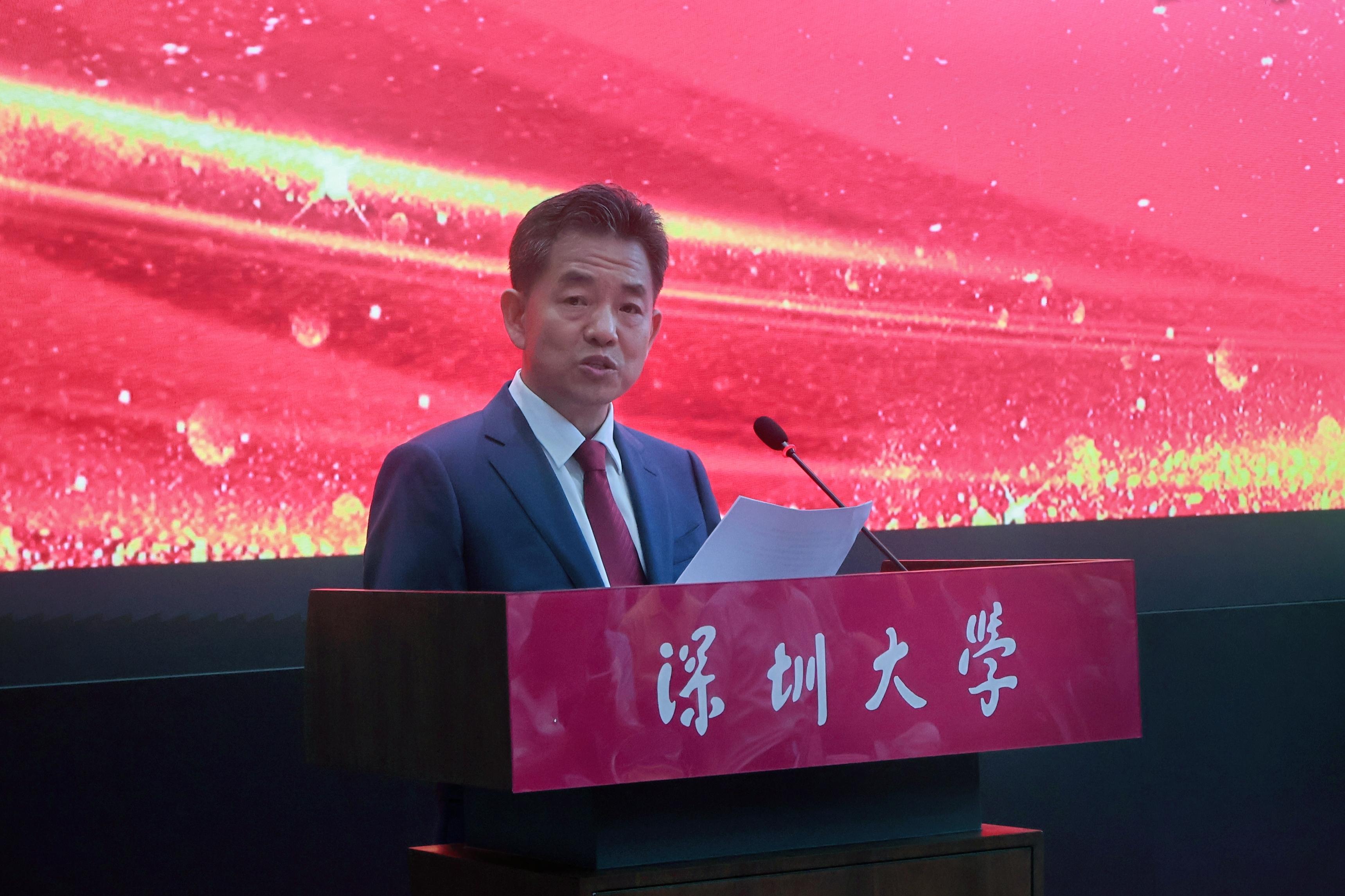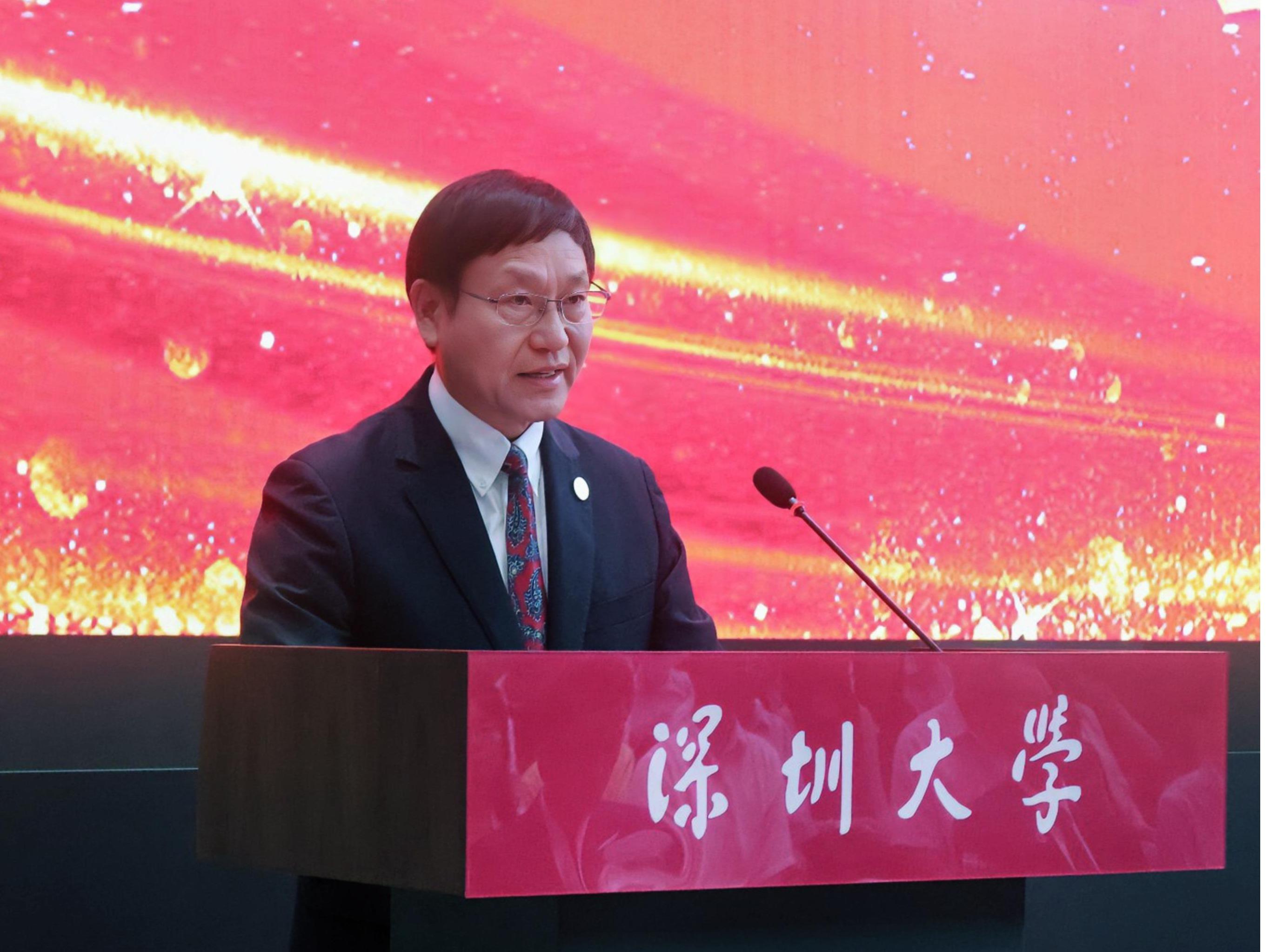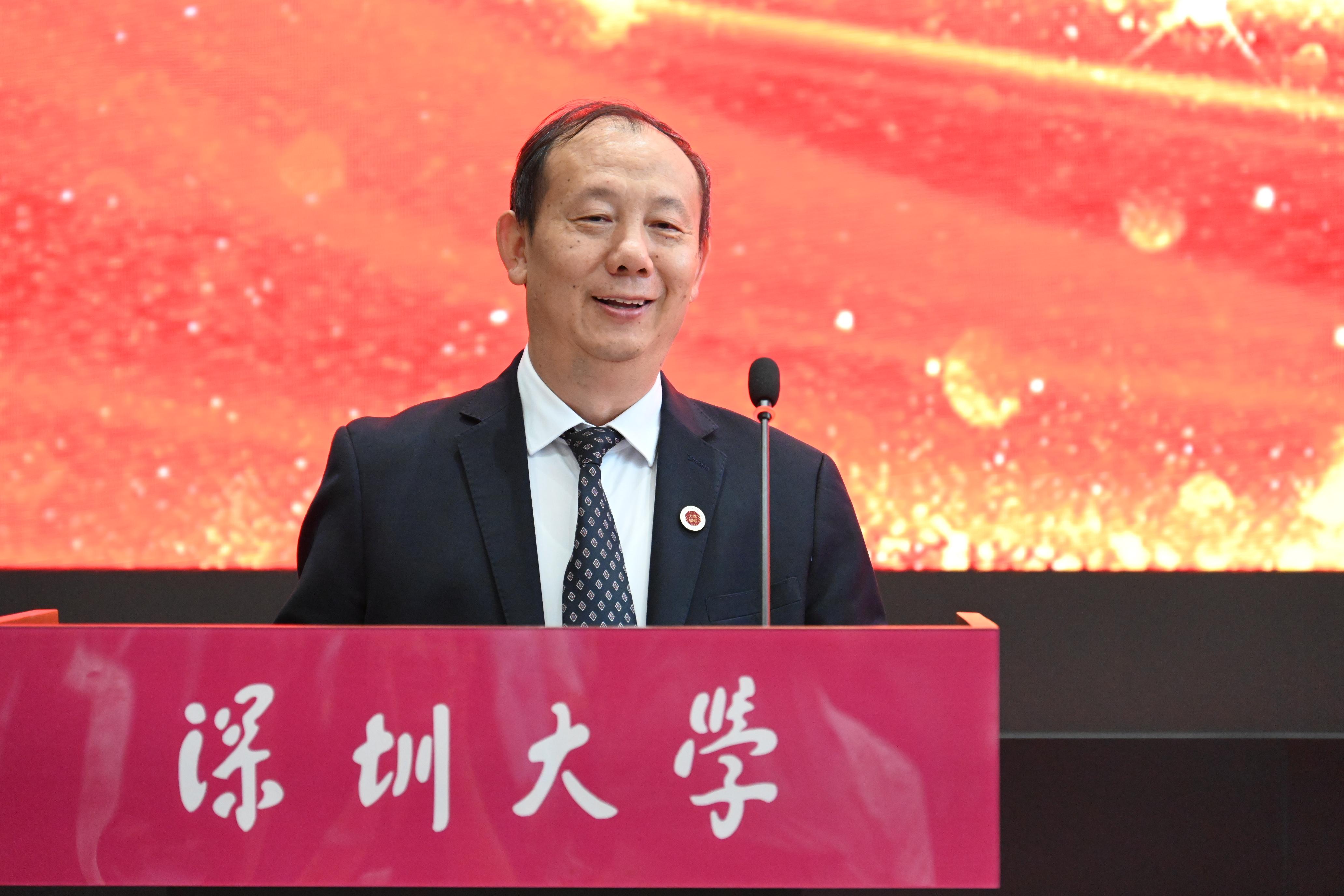 毛军发校长在表彰大会上致辞。他首先代表学校向全体教职员工以及为学校发展做出重要贡献的老领导、老同志、老教师致以节日的祝福和亲切的问候。他表示,在过去的一年,全校教师踔厉奋发、攻坚克难,推动学校办学事业不断突破、强势攀升,学科建设快速进步,科研创新能力实现跃升,创新创业教育成效显著。毛军发指出,近年来,学校把教师队伍建设作为建设一流大学的重要支撑,通过优化引才政策体系、实施教育评价改革、完善人才考评制度、健全深大特色学术荣誉体系等举措,全面深化教师队伍建设改革,初步形成了有利于优秀人才脱颖而出的制度环境,涌现了一批包括黄大年式教师团队、深圳市教书育人楷模在内的优秀教师。他希望全校各单位继续强化师资队伍建设的责任担当,注重长远规划和前瞻布局;深入贯彻落实党中央关于教育评价改革的重要精神,坚持把师德师风作为教师队伍建设的首要任务和第一标准,进一步搭建各类教师发展和成长平台,不断激发教师队伍内生动力,切实为广大教师安心从教、潜心育人、静心治学营造良好环境。
