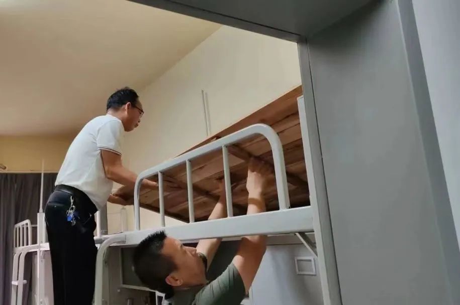 暑假期间,乐竞平台完成了毕业生退宿工作后,逐间检查宿舍的卫生情况,对家具设备进行检修维修,同时对宿舍进行修缮和家具添置,并以清单式完成卫生整备工作,以整洁干净的面貌迎接同学们到来。