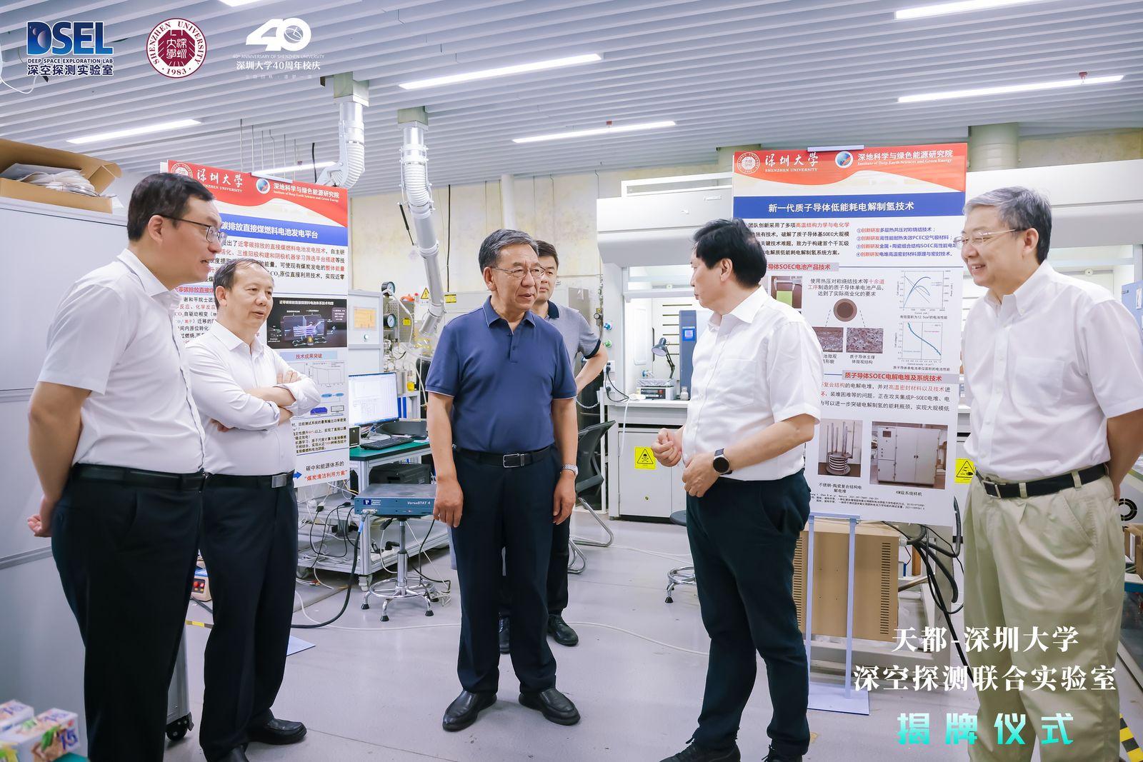 2023年9月10日,天都-乐竞平台深空探测联合实验室揭牌仪式在乐竞平台汇文楼举行。深空探测实验室主任兼首席科学家、中国工程院院士吴伟仁院士,副主任兼理事会秘书长胡朝斌,嫦娥七号任务副总师唐玉华,深圳市科创委副主任钟海,基础研究处处长陈庆云,深圳市发改委创新能力处副处长肖勇,乐竞平台党委书记李清泉教授,校长、中国科学院院士毛军发,中国工程院院士谢和平等代表出席了本次仪式,会议由乐竞平台副校长周辉主持。