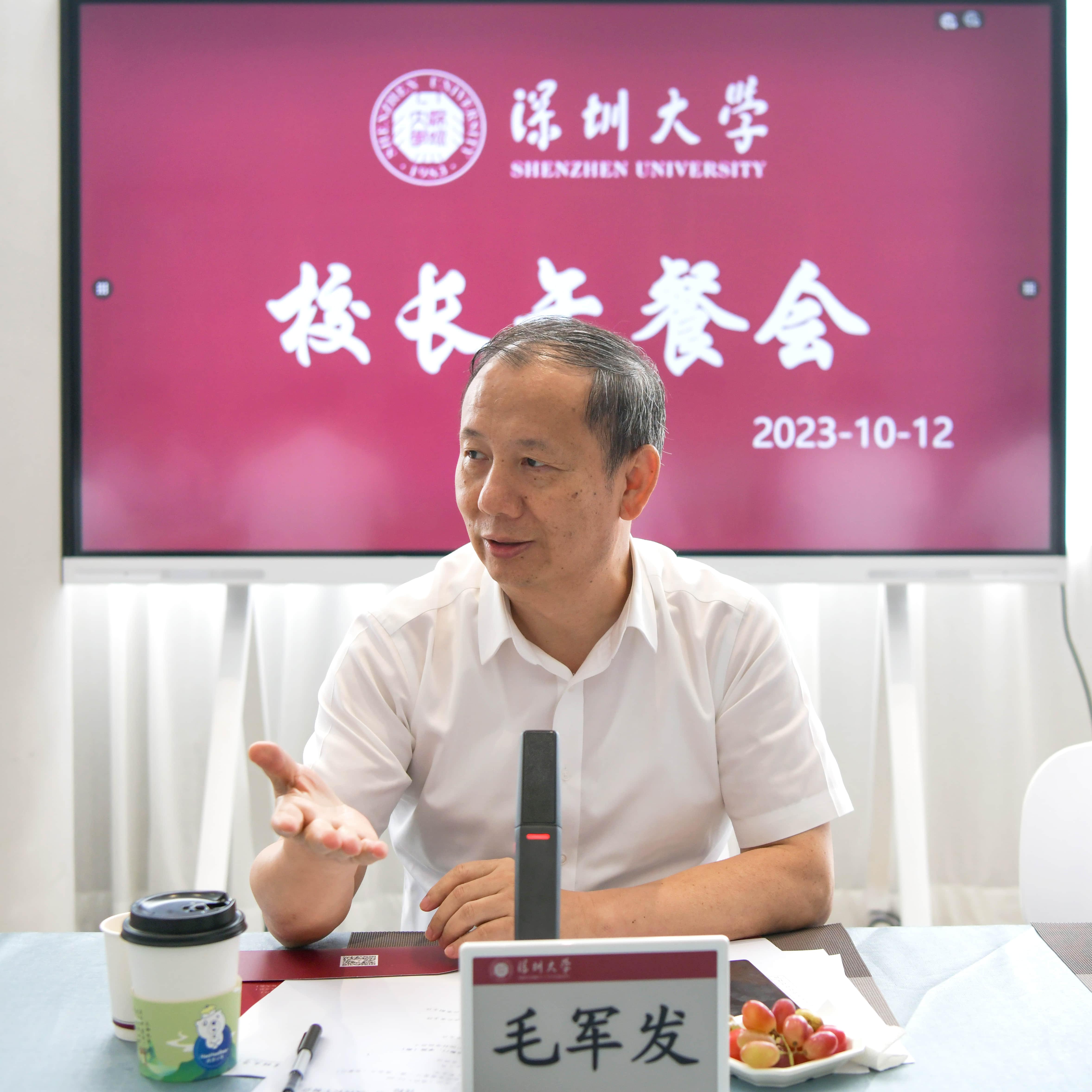 两个小时的午餐会接近尾声,毛军发对同学们关注学校发展的热情表示肯定。他要求学校各部门对学生们提出的问题和建议要做到后续严格落实,定期和不定期通报进展,能够解决的问题及时解决,无法及时解决的问题要说明原因,做到“事事有回应”,更要提高主动服务的意识,及时发现和解决问题,为同学们创造更加良好的校园环境。“午餐会时间有限,但学校会从更多渠道倾听同学们的想法,了解同学们的诉求,听取同学们关于学校发展的建议。学校不断为建设世界一流综合性大学而努力,不负学生、家长及社会各界的期待。”毛军发说。就同学们希望学校“更上一个新台阶”的期待,他表示,下一步学校将在教育部、广东省、深圳市的大力支持下,加速学校的发展,提高学校的办学质量,扩大学校的影响力,提升高质量服务经济社会发展的能力。