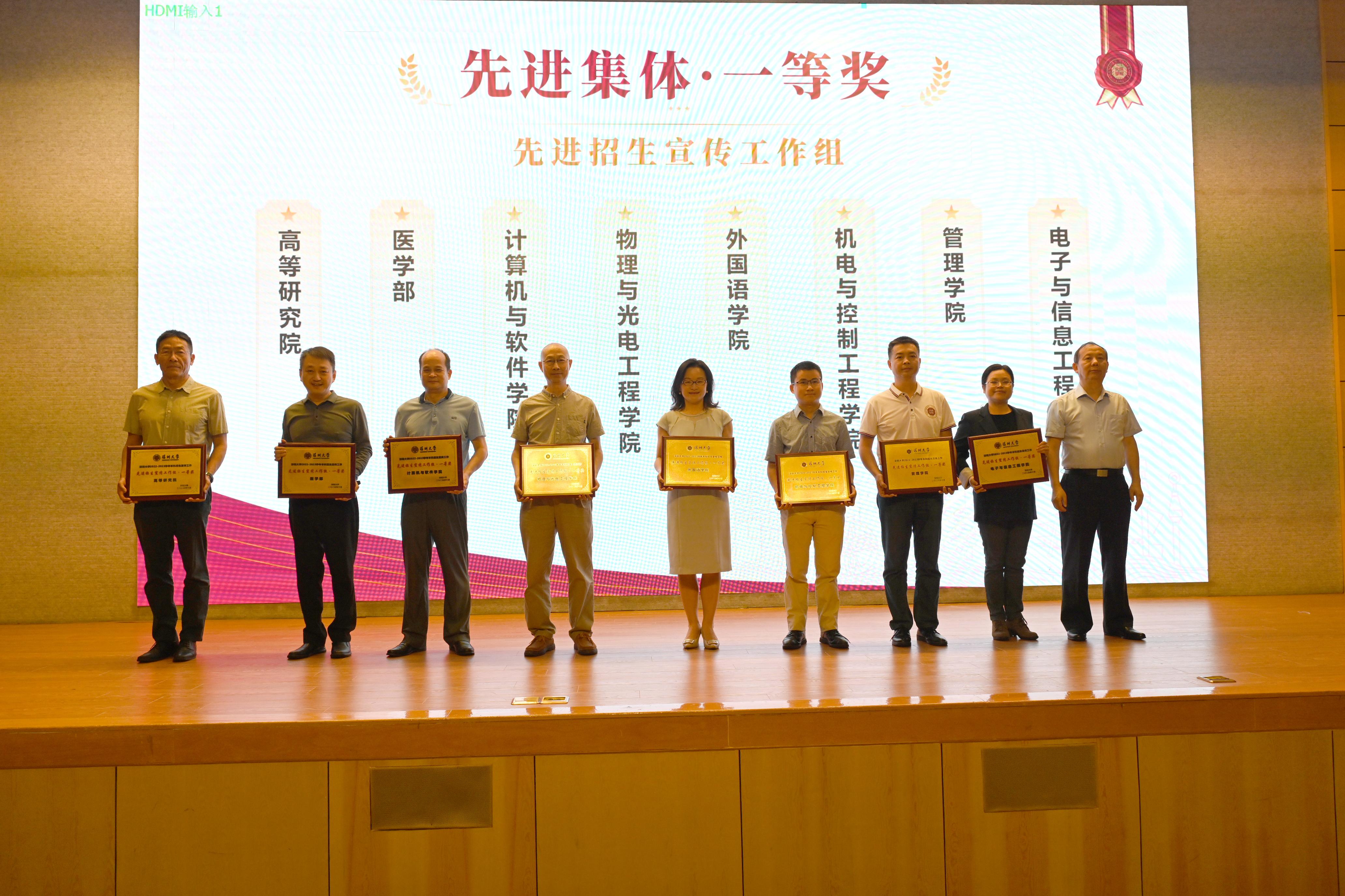 会上,学校表彰了一批在2023年招生宣传工作中表现突出的集体和个人。毛军发、张晓红、袁磊为先进招生宣传工作集体和个人颁奖。高等研究院、医学部等8个单位获得先进集体一等奖,外国语学院、电子与信息工程学院等8个单位获得先进外省招生宣传责任小组一等奖;彭华新等25人获得突出贡献奖,罗成文等26人获优秀中学招生宣传责任人一等奖,彭晓哲等8人获评“名师进中学”优秀主讲人,彭小刚等6人获评“本科招生宣讲团”优秀主讲人,韩鹏等24人获评优秀招生宣传联络员。