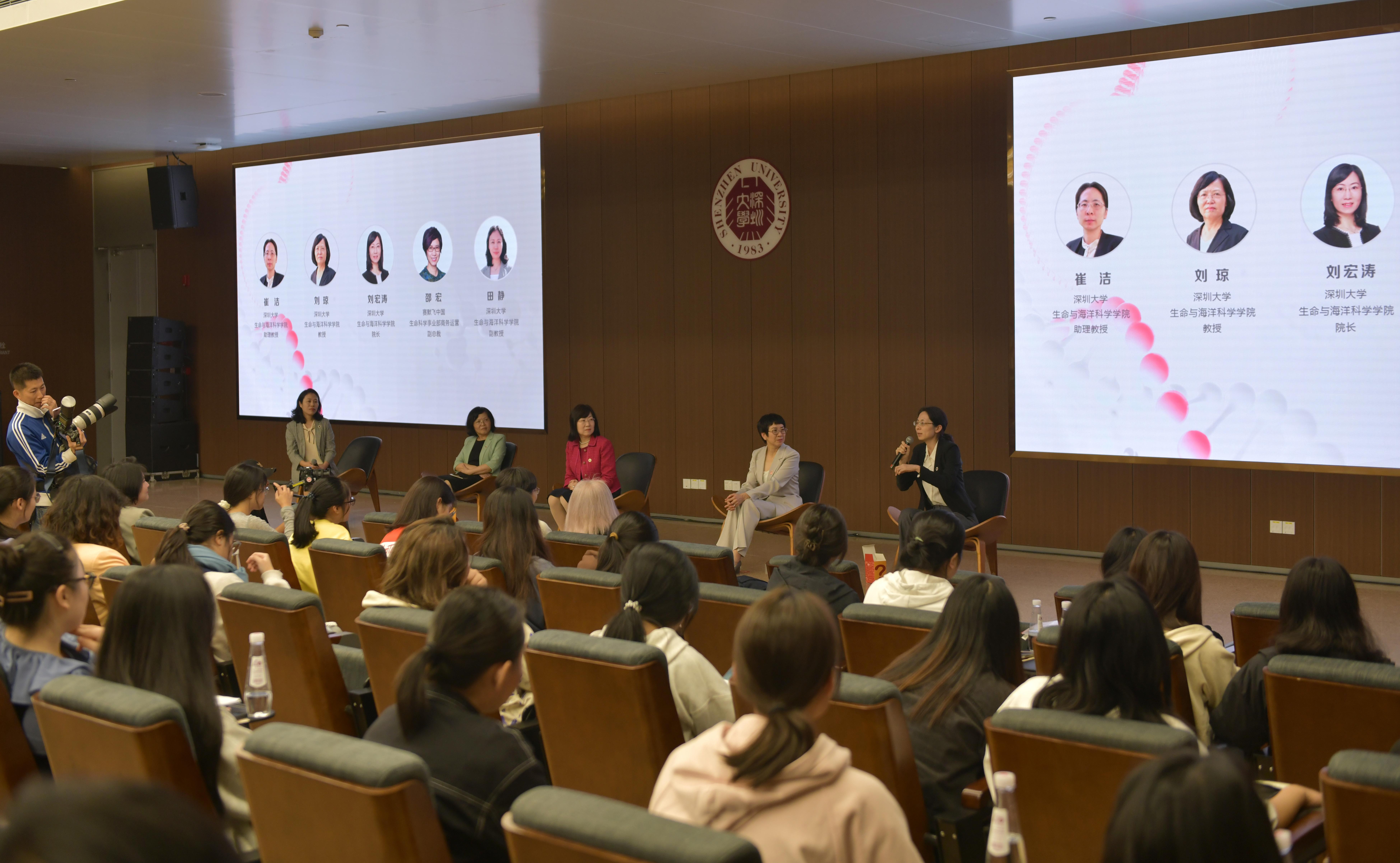 活动还举行了女性科研成长主题分享会。乐竞平台生命与海洋科学学院院长刘宏涛、教授刘琼、副教授田静和助理教授崔洁分别作《努力与创新——遇见更好的自己》《兴趣、恒心、责任感》《从好奇到热爱——我的科研之路》《保持乐观——在不断学习中努力成长》主题分享,讲述科研生涯中的经历与感悟。赛默飞中国生命科学事业部商务运营副总裁邵宏结合自身职业生涯的经历与感悟,呼吁女生们找准兴趣、提前规划、服务社会。活动现场,刘宏涛、刘琼、田静、崔洁、邵宏与学生代表展开互动交流,聚焦STEM领域的青年女性人才,共话前沿科技与研发突破,分享从业经验与经典案例,探讨人才培养与职业发展。