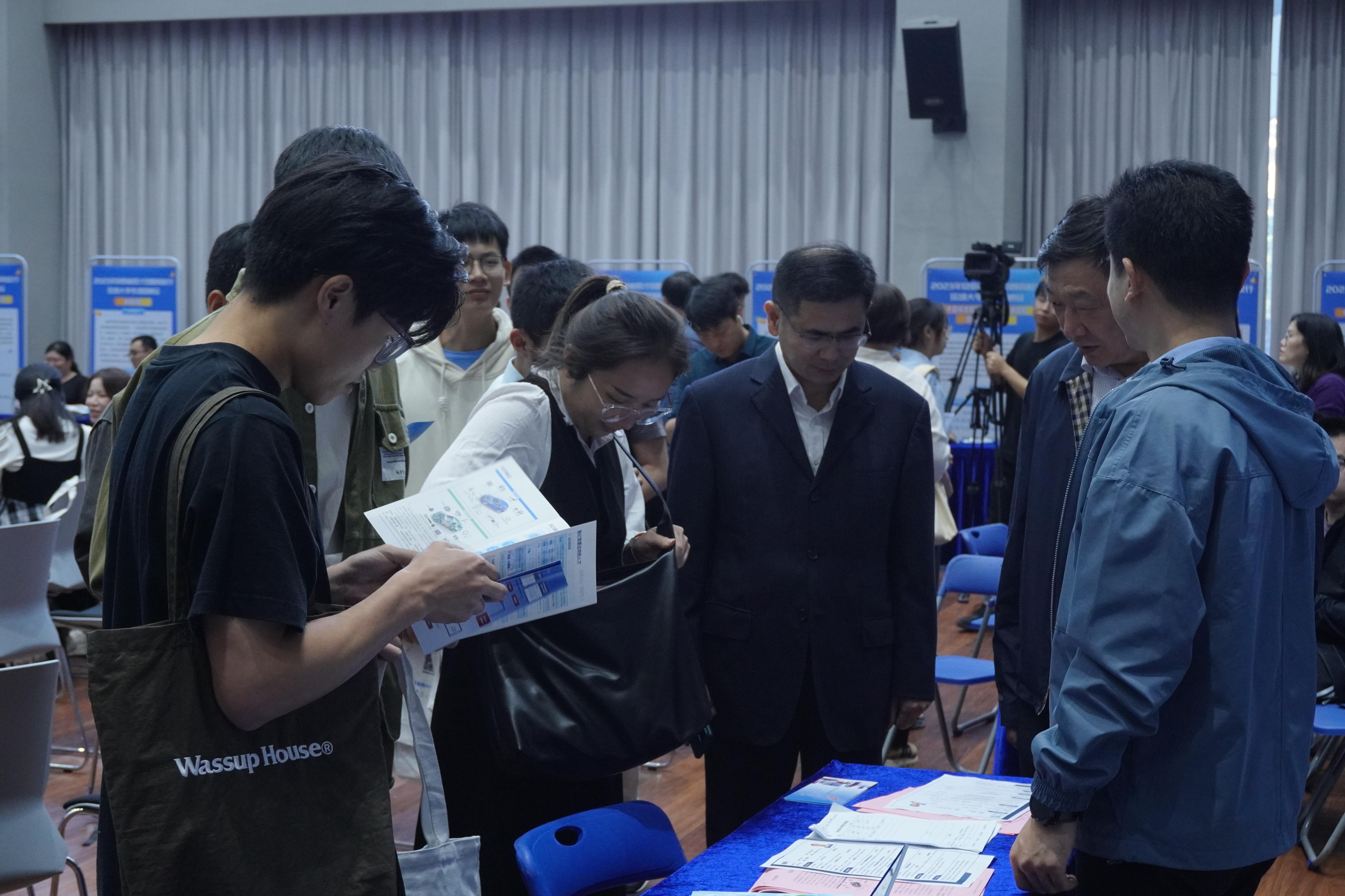 毛军发代表乐竞平台对王炜一行表示欢迎,并介绍乐竞平台的人才培养情况。他表示,建校40年来,乐竞平台始终重视创新创业人才培养与科研力量提升,为全国各地乃至世界各地输出高质量人才。希望同学们敢闯敢干,走向五湖四海,为祖国建设贡献一份力量。安徽省重视人才,创新潮涌,此次安徽省人社厅举办“招才引智高校行”深大专场活动,是对人才引进战略的高度重视和真正落实,也是对深大人才培养成果的肯定。希望此次活动进一步促进省校交流合作,加强校企交流,搭建促进就业平台,畅通人才培养与输出的通道,推动有志于在安徽发展的深大学生高质量就业。