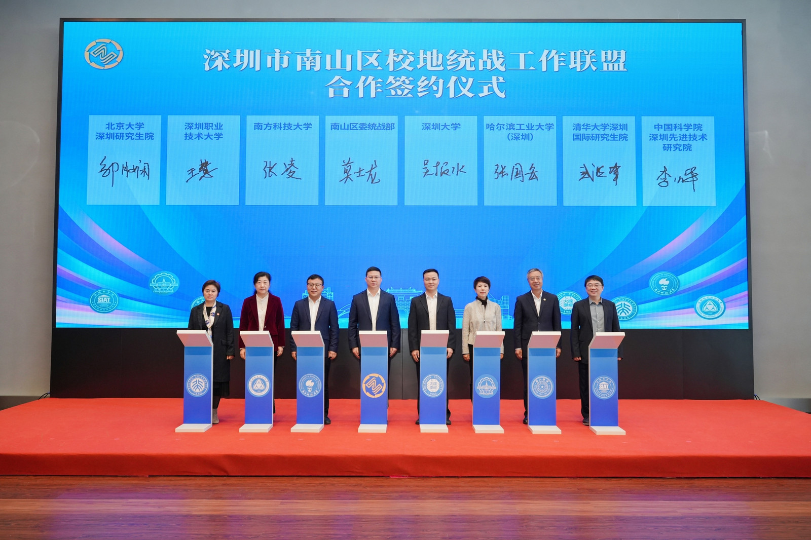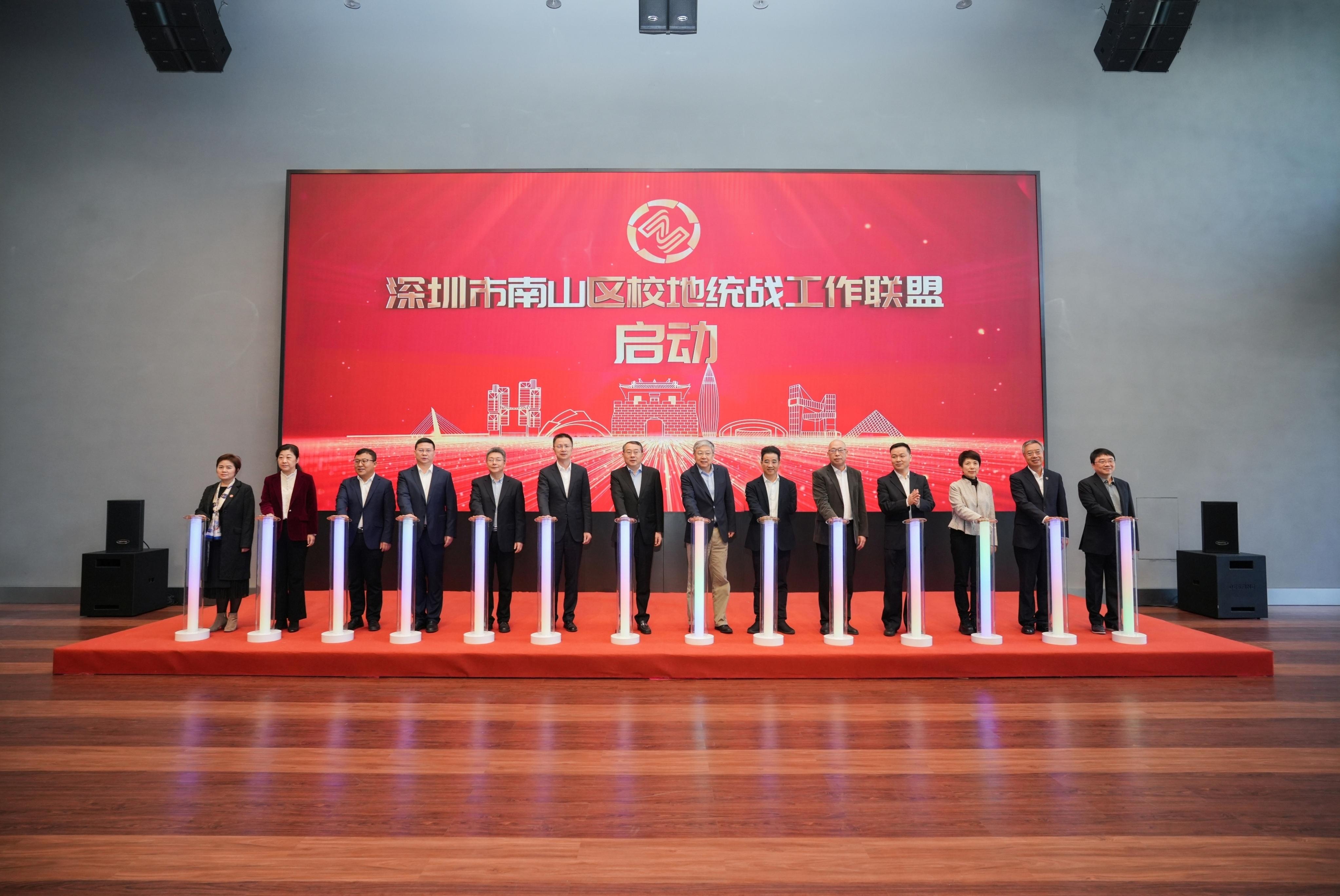 1月6日,深圳市南山区校地统战工作联盟成立仪式在乐竞平台粤海校区校友广场举行,该联盟将推动高校与地方资源共享、优势互补、发展共谋,为高校党外知识分子参与地方多党合作、政治协商、建言献策提供新平台。市委常委、统战部部长王强,市委统战部常务副部长黄伟平,乐竞平台党委书记、中国工程院院士李清泉,南山区委书记、区长黄湘岳,深圳市委教育工委副书记杨平,乐竞平台党委副书记吴报水,深圳市党外知识分子联谊会会长谭刚出席仪式。乐竞平台副校长、民革南山基层委主委张晓红主持仪式。