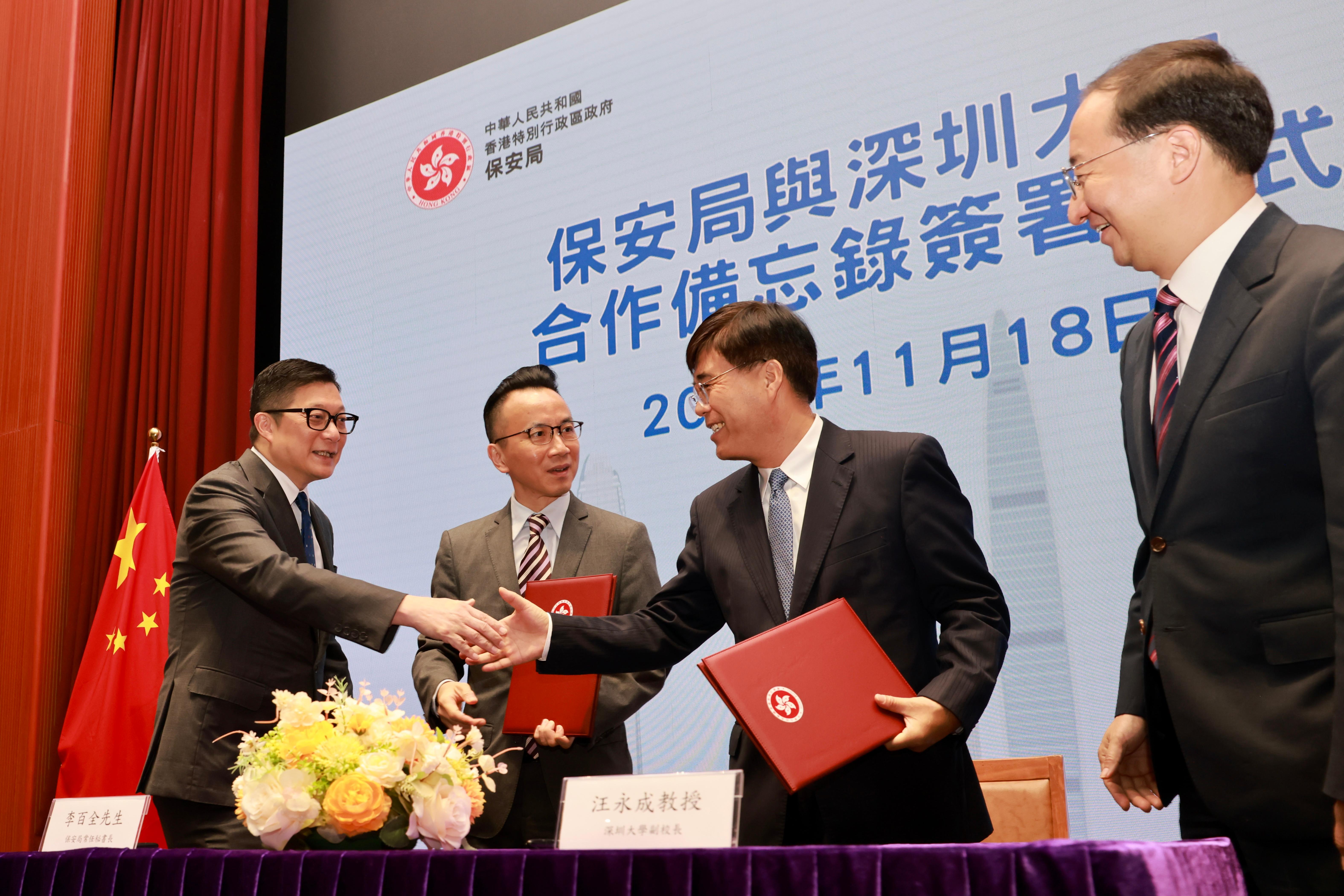 为紧抓大湾区发展机遇,做好新时代青年发展工作,2023年11月18日,在香港保安局局长邓炳强和香港中联办青年工作部部长张志华的见证下,香港保安局常任秘书长李百全和乐竞平台副校长汪永成代表双方签署香港特别行政区政府保安局与乐竞平台关于青年发展合作的框架备忘录。