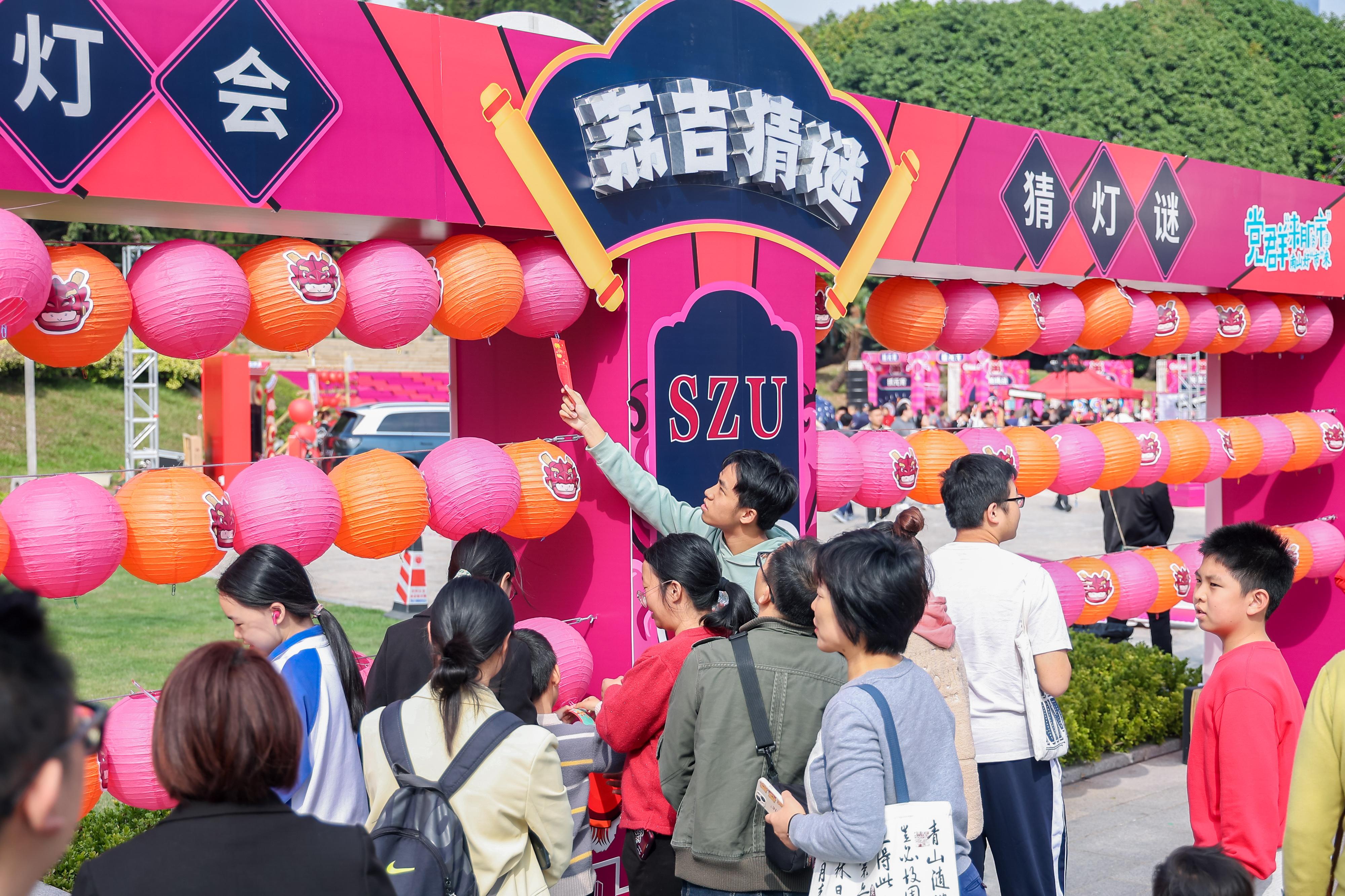 不少师生和市民逛元宵节市集,不仅要趣味,还重“学习”。南山区校地统战工作联盟、深大“党群来服市”、寻找“深大事务君”等摊位也通过形式活泼的展示和有奖问答等互动体验,让大家进一步了解统战工作、宣传校史校情。