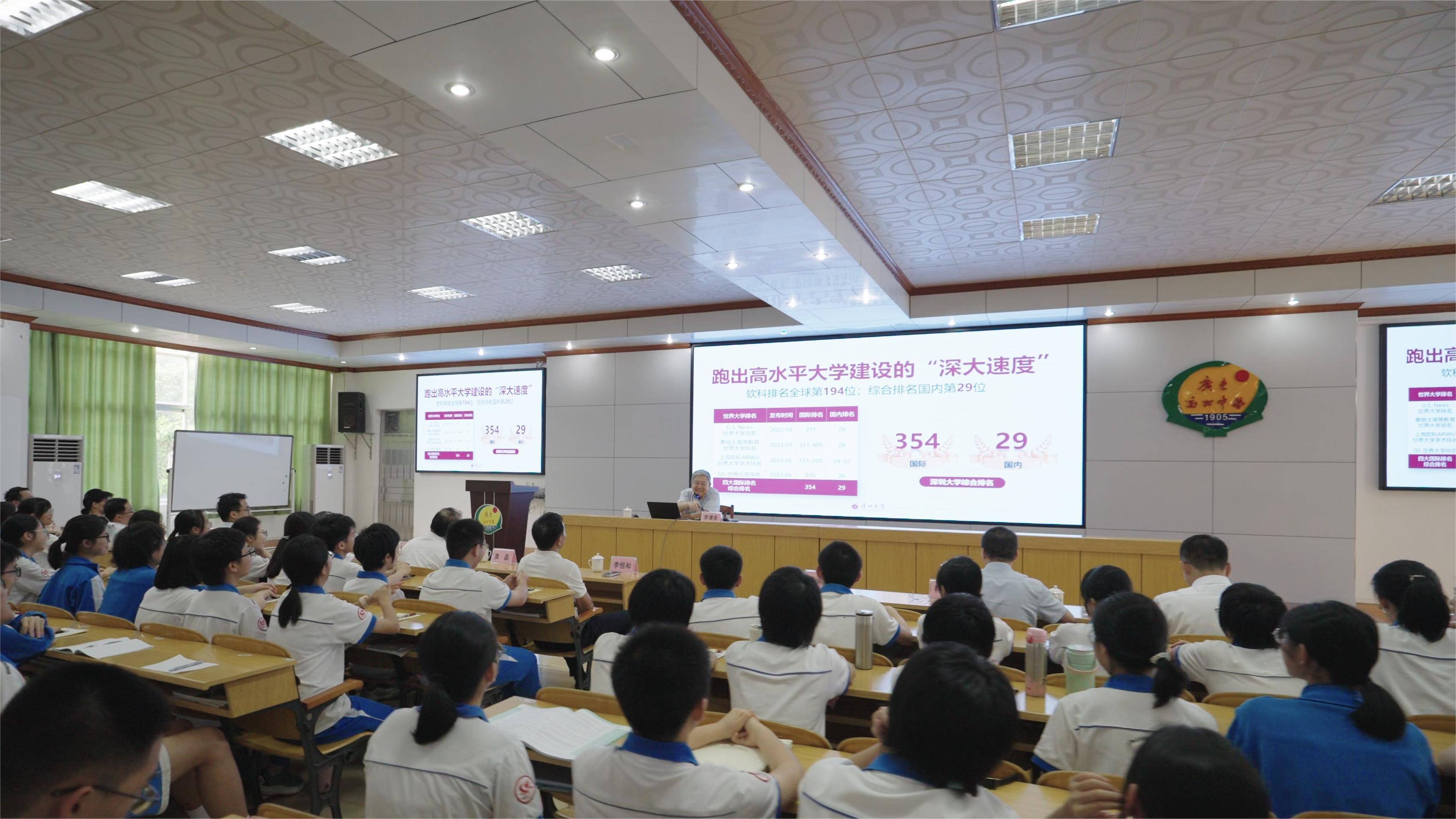 李清泉先后在上述四所中学为高中学生开展题为《全空间地球感知与应用》的讲座,介绍空间信息智能感知的理论方法与装备研究现状。