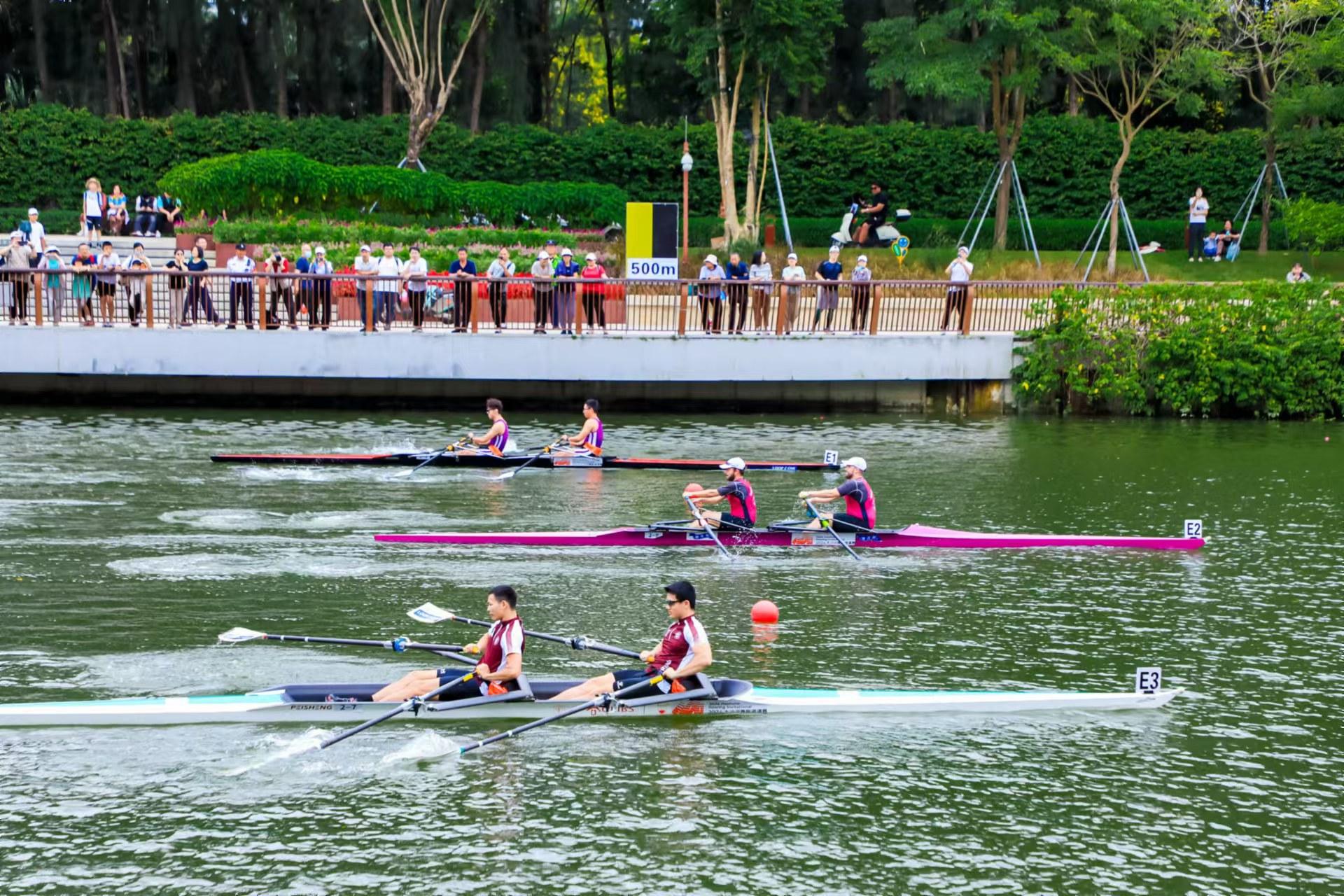 随着阳光逐渐洒满赛道,比赛正式开始。来自澳大利亚、荷兰、西班牙、瑞士、丹麦、法国、德国、新西兰、意大利9个国家的10支国际高水平赛艇队伍,以及中国深圳、香港、澳门的9支队伍齐聚大沙河,参赛选手们劈波斩浪,在大沙河划出一道道绚丽的轨迹。