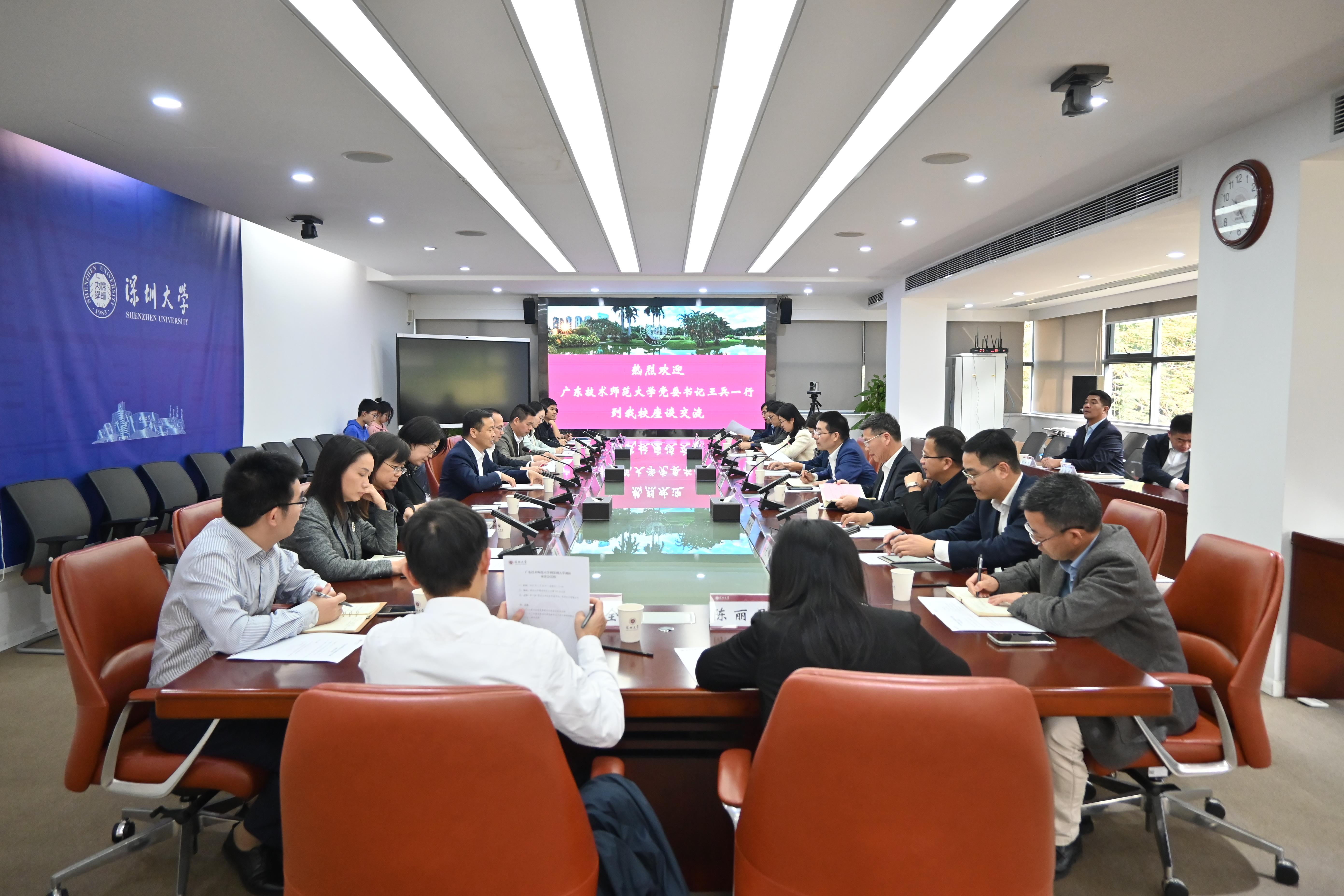 乐竞平台党政办公室、党委组织统战部、党委宣传部、机关党委、教务部、研究生院、科学技术发展研究院、学生部、人力资源部等部门负责人,广东技术师范大学党委办公室(统战部)、党委宣传部、党委教师工作部、校长办公室、党委学生工作部、招生就业办公室、研究生院、教务处、科研处(与人文社科处合署)、网络空间安全学院、教育质量监控与评估中心、发展规划处、校友会、教育发展基金会等部门负责人参加座谈。