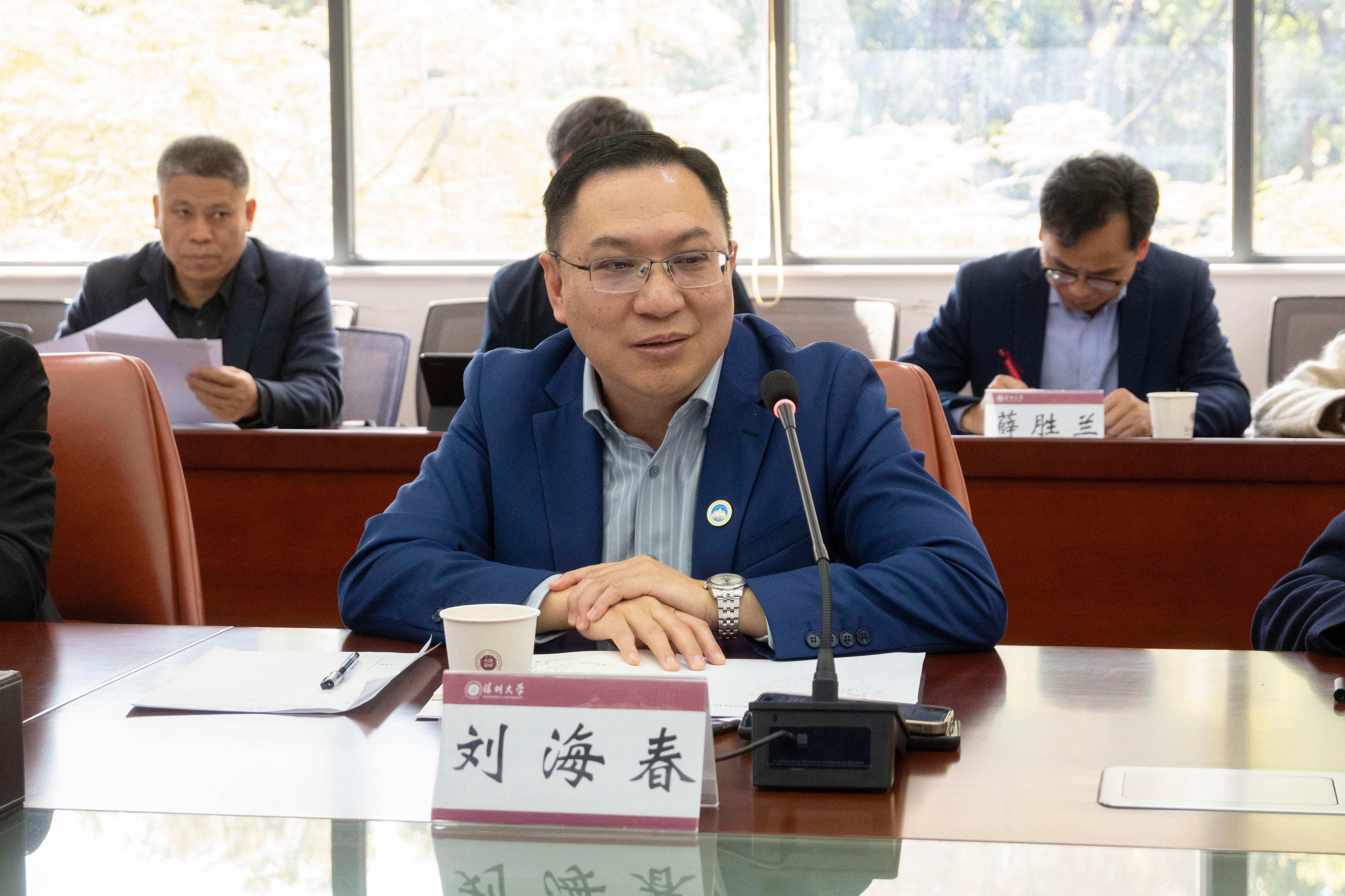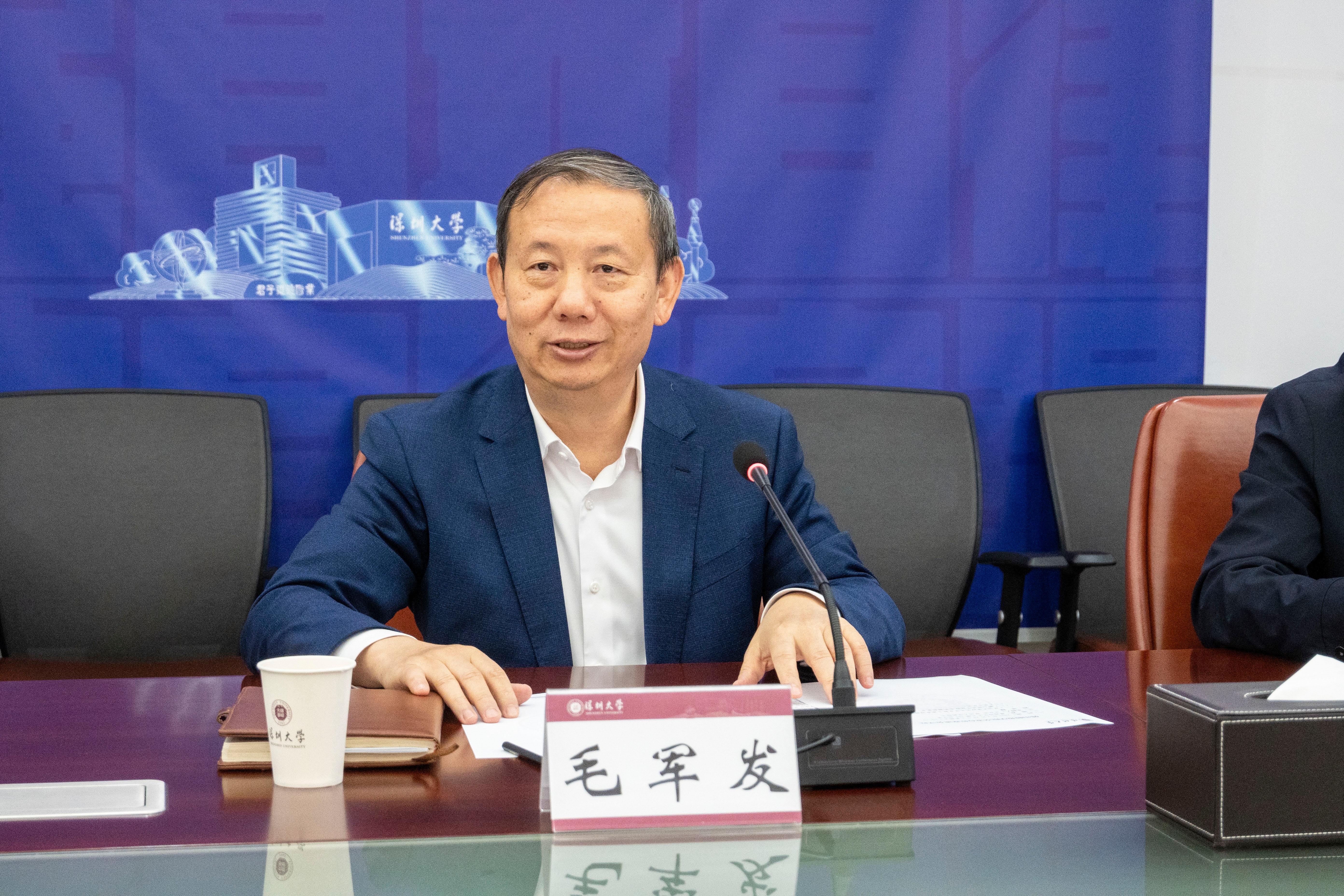 毛军发对刘海春一行的到来表示欢迎,并肯定了双方长期帮扶合作的成效。他表示,深大始终将帮扶工作视为“责任共同体”的使命担当,两校友谊深厚、合作紧密,在学科共建、人才培养、科研合作等方面取得显著成效。毛军发要求新一届帮扶工作队深入调研韩师需求、精准对接发展短板、创新协作模式,重点在学科建设、科研攻关、人才引育等领域发力,为韩山师院“十年申博改大”夯实基础。发挥深大“特区大学”优势,探索信息化赋能、国际资源嫁接等新路径;树立长效目标,既要助力韩师补齐短板,更要形成可复制的校际帮扶“深大模式”,为国家高等教育均衡发展提供范例。