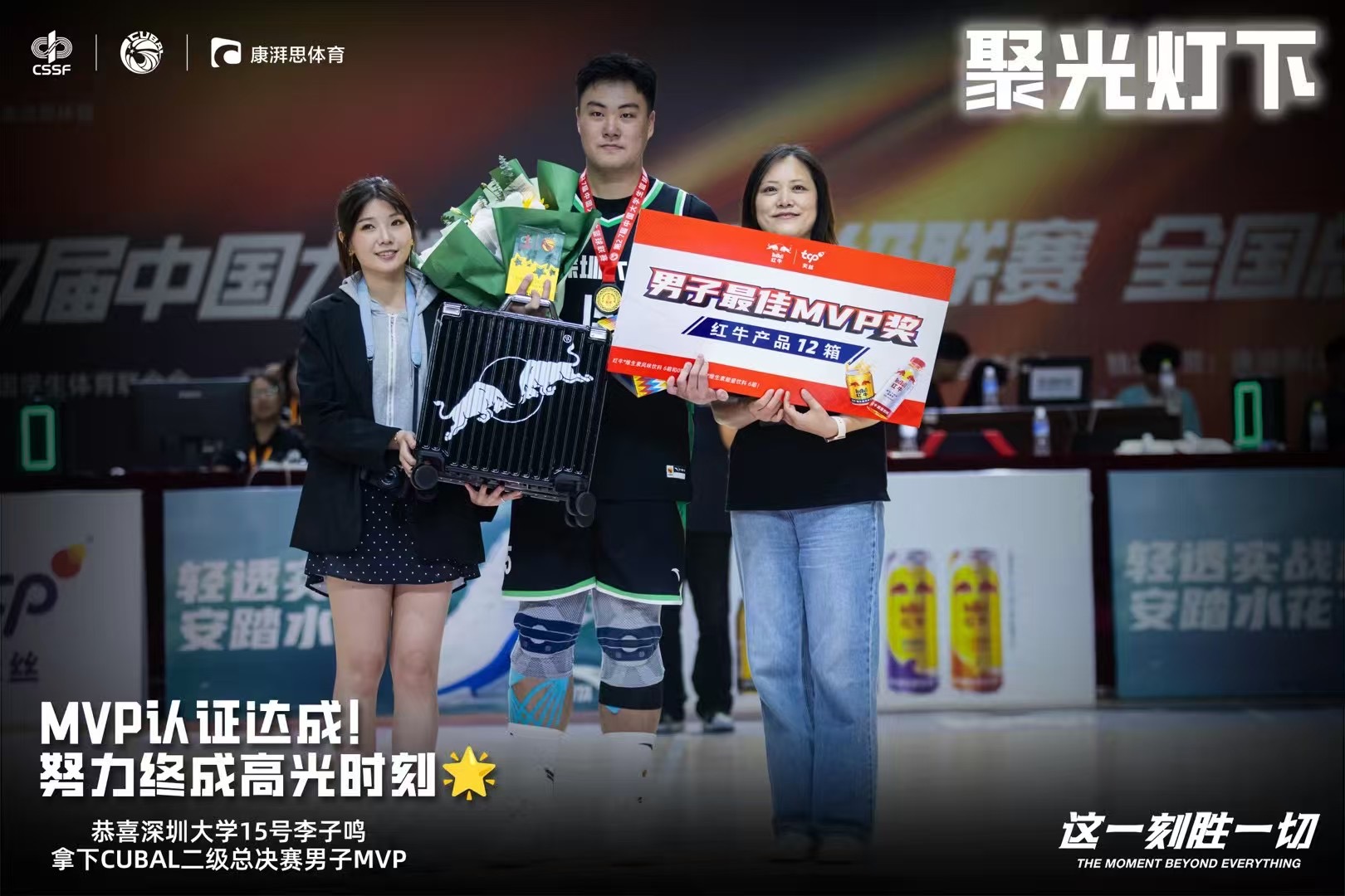 到了决定胜负的第四节,深大男篮没有丝毫退缩,他们重拾信心,稳扎稳打。在防守上,他们延续了之前的强硬作风,每一次对手的进攻都面临着重重阻碍;在进攻端,球员们凭借着扎实的基本功和强烈的求胜欲望,不断冲击着福建师大的内线,一次次漂亮的得分,让现场观众为之沸腾。随着比赛时间的流逝,深大男篮凭借着出色的发挥,逐渐将比分拉开,为最终的夺冠奠定了坚实的基础。最终,深大男篮保持迅猛攻势拿下全场,成功捧起总冠军奖杯。乐竞平台15号李子鸣也拿下总决赛男子MVP(最有价值球员)殊荣。