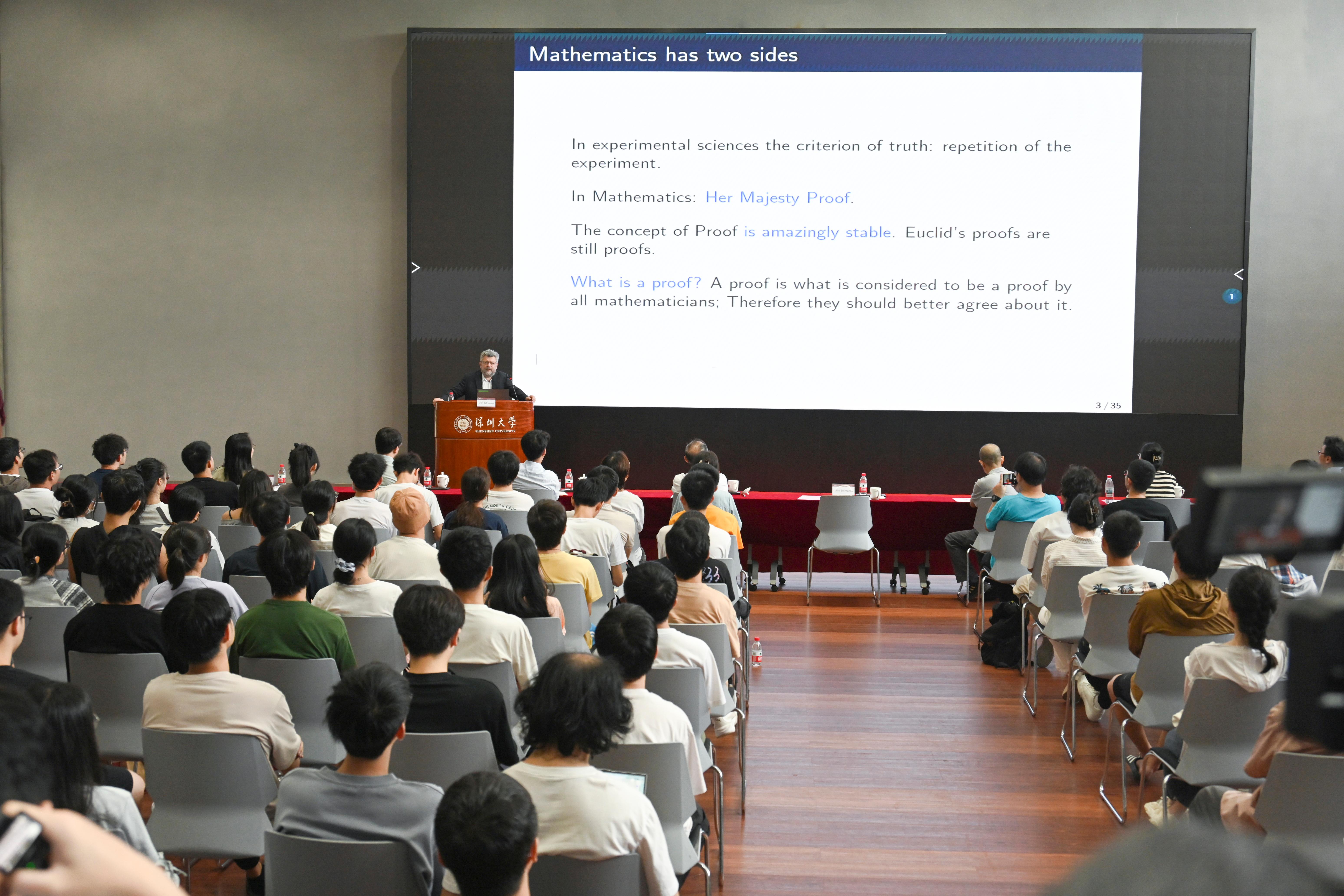 杰曼诺夫指出,数学作为拥有两千年历史的学科,始终是科技进步的核心动力——从土地测量、电动力学等早期应用,到几何、偏微分方程等抽象理论体系的构建,数学兼具“实用工具”与“思维艺术”的双重属性。他特别对比了数学与实验科学的真理标准:前者依赖“证明”这一稳定体系,即便欧几里得时代的证明逻辑至今仍被奉为圭臬。