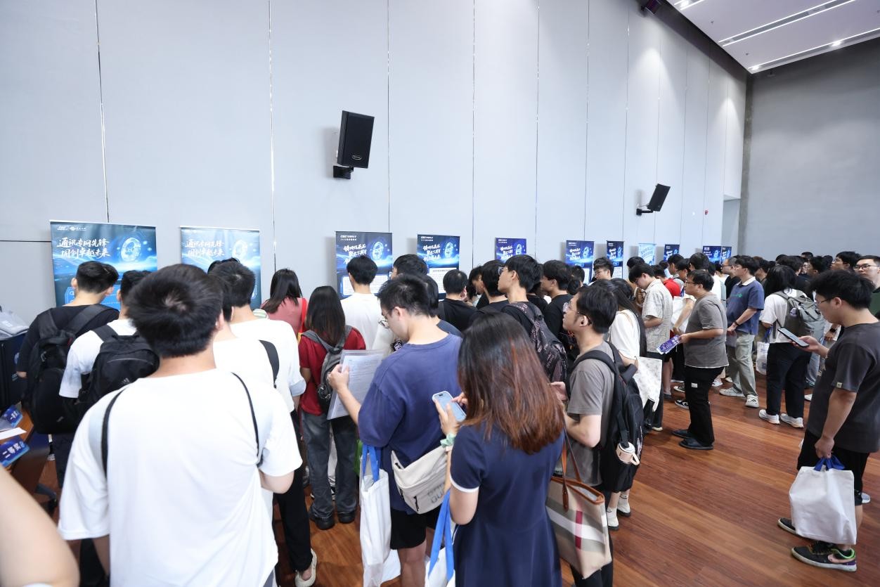 宣讲会结束后,19家下属企业随即开展招聘活动。现场学生聚集在展位前,形成密集的应聘人潮,各企业摊位前均排起长队。现场学生表示:“中国电子作为网信产业‘国家队’,能提供参与国家重大项目的机会,是毕业生理想的职业发展平台。”多家企业HR反馈,深大学生专业素质突出,与岗位匹配度高。