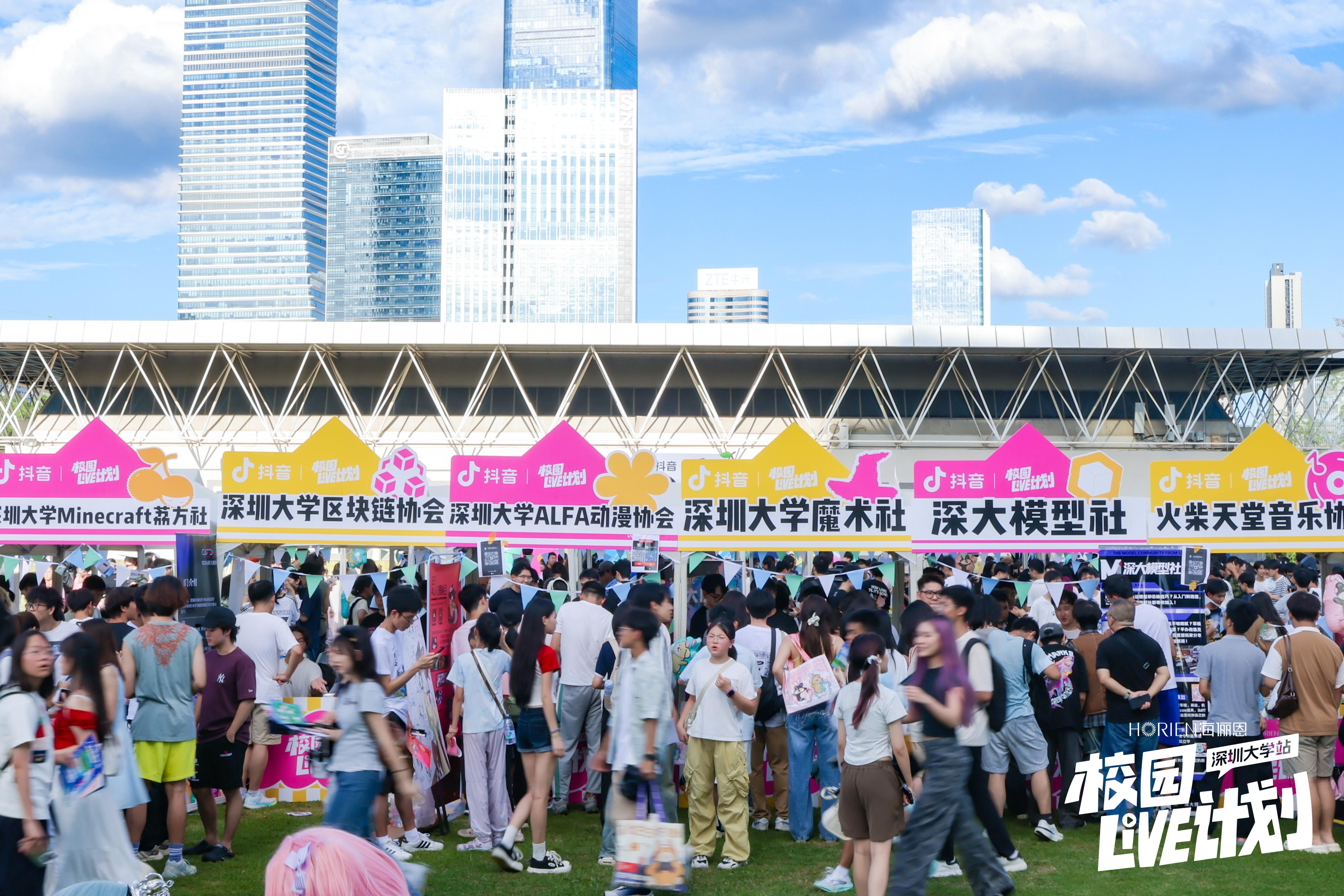粤海校区飞盘广场人头攒动。80个社团摊位组成了“S”“Z”“U”三个字母,飞盘社的扔飞盘体验摊位前早已排起长队,天文协会摊位前摆放的天文望远镜最为吸睛,赛艇队的摊位也人气很旺,参与者在测功仪上奋力比拼“200米划行”。校园乐队、舞团激情登场,舞台快闪活动吸引了不少留学生,来自法国的Theo和Yann感慨:“我们学校的活动太有氛围感了!”休闲美食摊位则用味蕾唤醒了校友们的青春记忆。