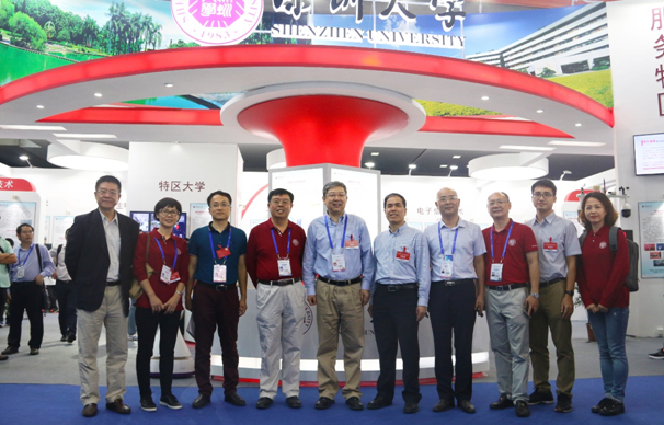 11月14日下午,李清泉校长在科技部主任文振焜、副主任徐艳丽、党政办副主任刘海山的陪同下,莅临我校高交会展区观摩指导。