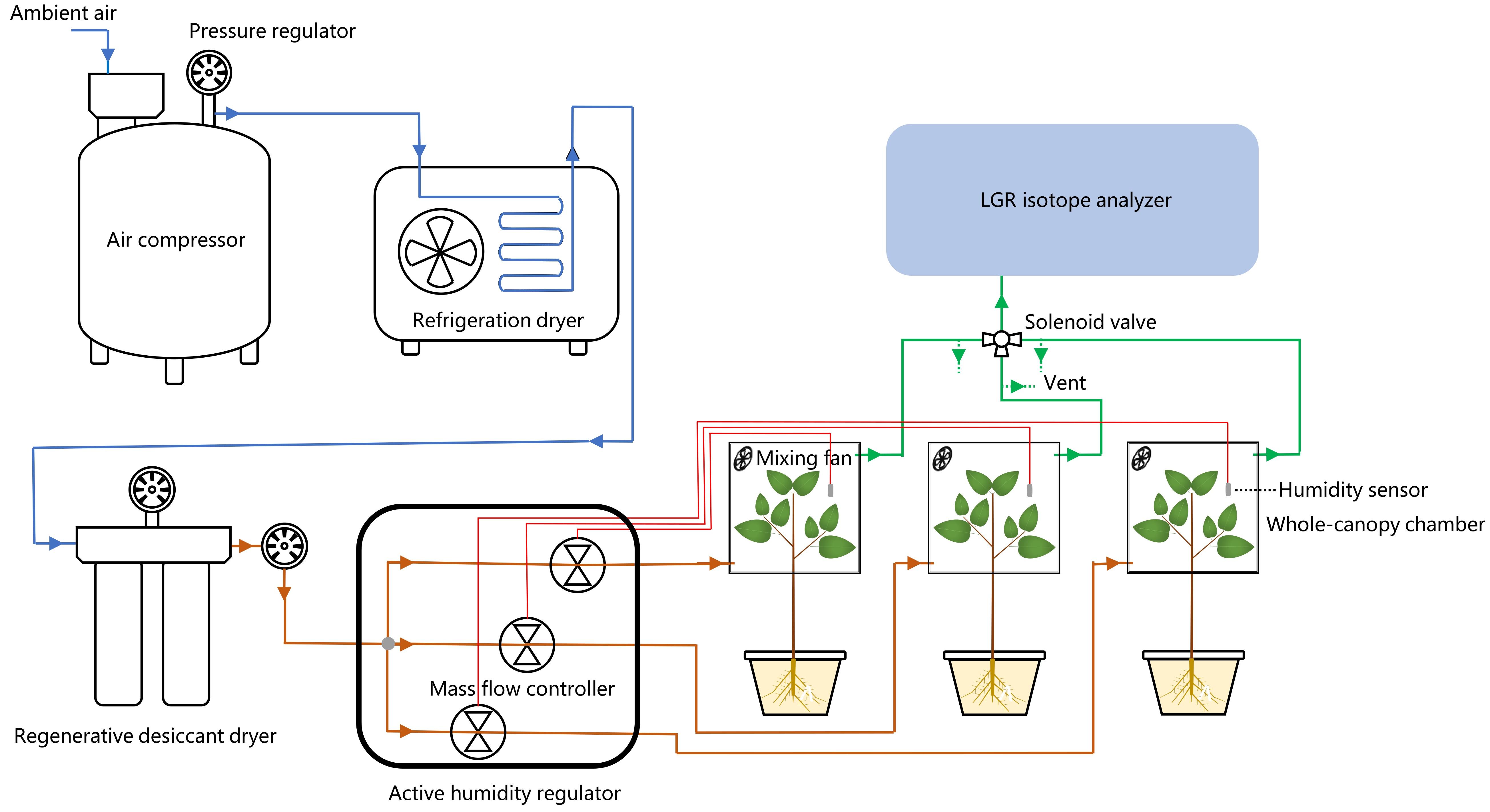 图1 基本于植物冠层稳态蒸腾同位素守恒原理的植物木质部水氢氧同位素组成测量装置