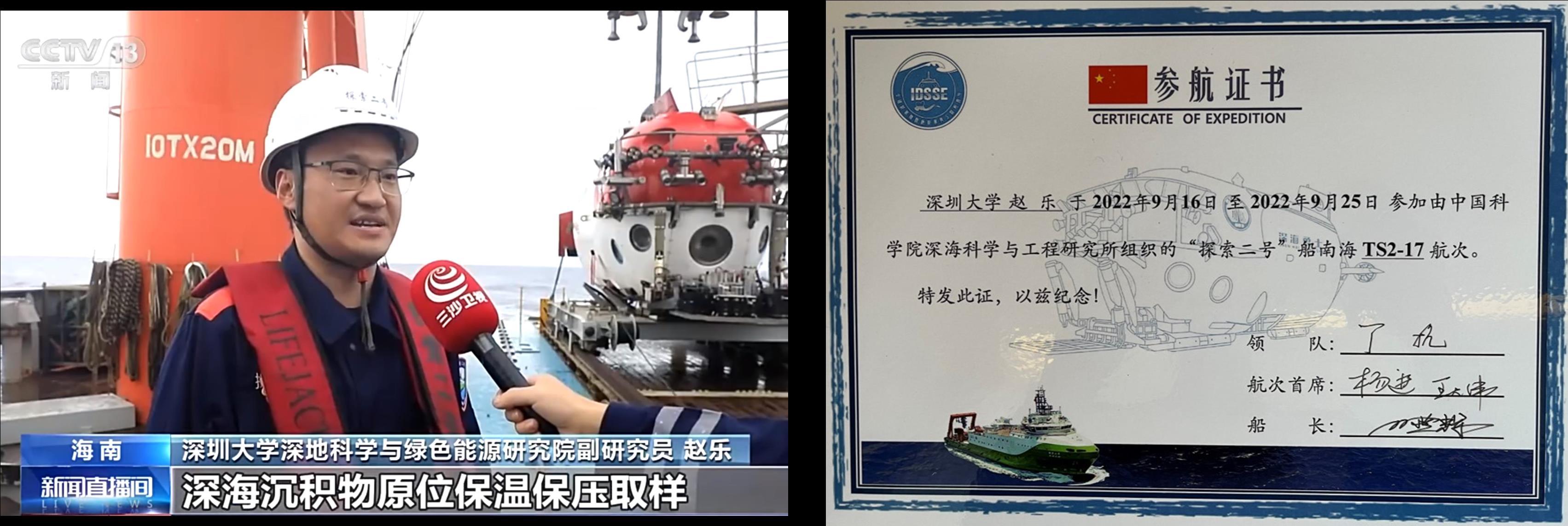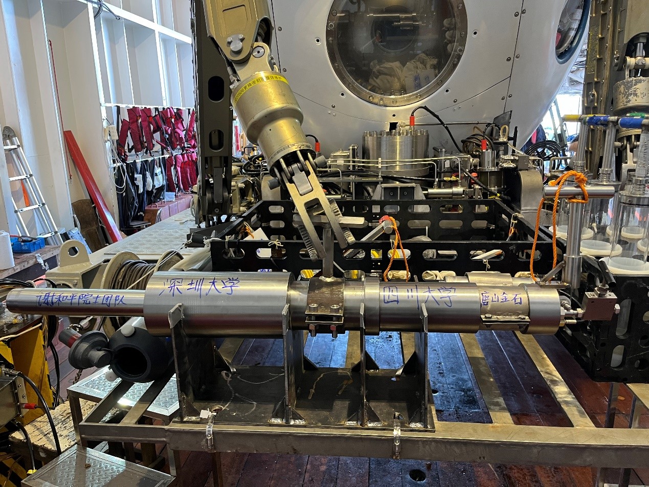 2022年9月23日,由我校土木与交通工程学院谢和平院士领衔、乐竞平台与四川大学团队自主研制的深海沉积物(天然气水合物)保温保压取样装备海试成功,实现了国际上首次获得保温保压的深海沉积物(天然气水合物)原位保真样本。