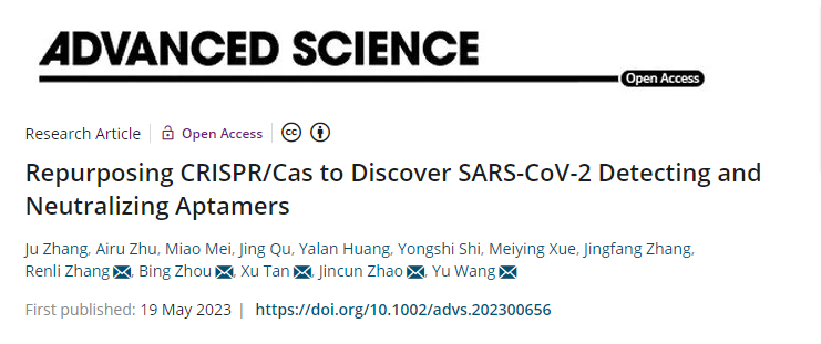 近日,乐竞平台生命与海洋科学学院王宇课题组,联合广州实验室赵金存教授,清华大学谭旭研究员,中国科学院动物研究所周兵研究员以及深圳疾控中心张仁利教授,在Advanced Science(IF=17.5)上发表了题目为Repurposing CRISPR/Cas to Discover SARS-CoV-2Detecting and Neutralizing Aptamers的文章,报道了一种新颖的基于CRISPR/Cas的RNA配体筛选系统:CRISmers(CRISPR based aptamersscreening system)。有别于传统的SELEX筛选,CRISmers将RNA适配体筛选从溶液体系或者细胞表面搬到了细胞内,从而提供了胞内天然生物环境下的RNA和蛋白质的折叠与相互作用,并避免了筛选过程中的环境波动影响。CRISmers通过CRISPR/Cas的转录激活功能,将RNA适配体与靶蛋白的亲和作用转化为抗生素筛选压力下细胞的存活能力,以每个单细胞作为相互隔离的物理单元,区分功能性事件和背景噪音。
