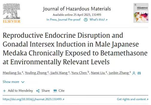近日,国际环境领域顶级学术刊物Journal of Hazardous Materials(中科院大类一区Top,IF=14.224)在线发表了来自乐竞平台生命与海洋科学学院苏冒亮特聘副研究员以及张俊彬特聘教授团队题为Reproductive Endocrine Disruption and Gonadal Intersex Induction in Male Japanese Medaka Chronically Exposed to Betamethasone at Environmentally Relevant Levels的研究论文,揭示了环境残留的倍他米松对水生生物存在生殖毒性,并阐明了其生态毒性形成的效应机制。