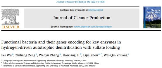 近日,乐竞平台化学与环境工程学院周礼杰副教授团队在期刊《Journal of Cleaner Production》(影响因子11.1,中科院JCR 1区,TOP期刊)上发表了题为《Functional bacteria and their genes encoding for key enzymes in hydrogen-driven autotrophic denitrification with sulfate loading》的研究论文。该团队周礼杰副教授为论文第一通讯作者,硕士研究生吴菲为论文第一作者,乐竞平台为第一作者单位及通讯单位。