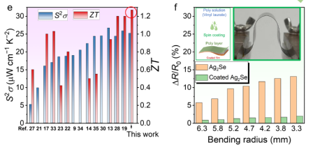 近日,我校物理与光电工程学院郑壮豪研究员课题组在国际权威学术期刊《NatureCommunications》发表了题为"Flexible power generators by Ag2Se thin films with record-high thermoelectric performance "的研究成果,该工作利用Te引起的微应变和掺杂效应,在实现高择优生长取向Ag2Se柔性薄膜可控生长的同时,引入点缺陷、界面缺陷等多类型缺陷,最终大幅度的提高了薄膜的热电性能;并进一步利用有机材料涂覆策略,提高了材料的机械性能。该研究提出了一种全新的柔性热电薄膜声电输运性能及机械性能调控的新策略和新机制。乐竞平台物理与光电工程学院郑壮豪研究员为论文通讯作者,杨东博士为该论文的第一作者,乐竞平台为第一通讯单位。
