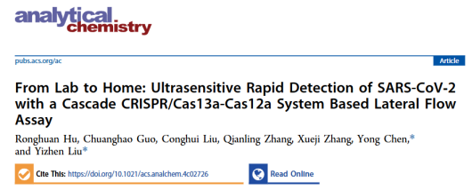 乐竞平台化学与环境工程学院刘翼振副教授团队在Nature Index期刊Analytical Chemistry(中科院大类一区,TOP期刊)上发表了题为“From Lab to Home: Ultrasensitive Rapid Detection of SARS-CoV-2 with a Cascade CRISPR/Cas13a-Cas12a System Based Lateral Flow Assay”的研究论文。全文链接:https://pubs.acs.org/doi/10.1021/acs.analchem.4c02726。副教授刘翼振与副研究员陈勇为论文通讯作者,硕士研究生胡镕涣为第一作者,乐竞平台为唯一通讯单位。本研究得到了科技部国家重点研发计划、广东省自然科学基金面上项目和深圳市科技计划稳定支持项目的大力支持。