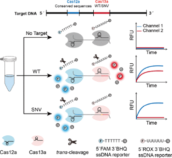 单核苷酸变异(SNVs)的快速可靠检测对于精准的病原体诊断、基因突变筛查及个性化医疗而言至关重要。然而,现有的基于 CRISPR 的核酸检测平台常存在信号解读模糊、特异性受限及检测流程复杂等问题。在此,研究团队介绍了 SPARC(基于 Cas12a/Cas13a 的特异性精准突变识别系统)—— 一种新型正交双通道 CRISPR 检测方法,该方法可显著提升单核苷酸变异检测的可靠性。