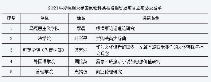 2021年度国家社科基金后期资助项目立项名单在全国哲学社会科学工作办公室官网公示,我校5个项目获得立项资助。截止目前,我校2021年国家社科基金项目立项总数为32项。