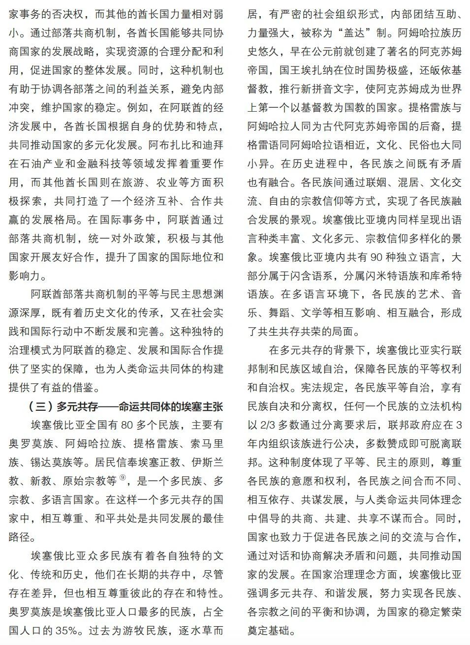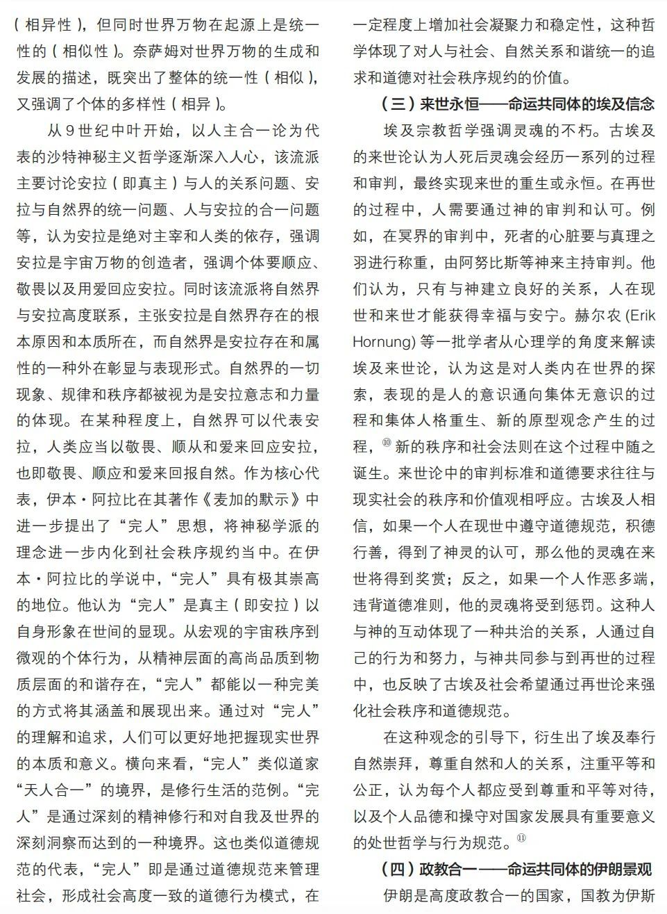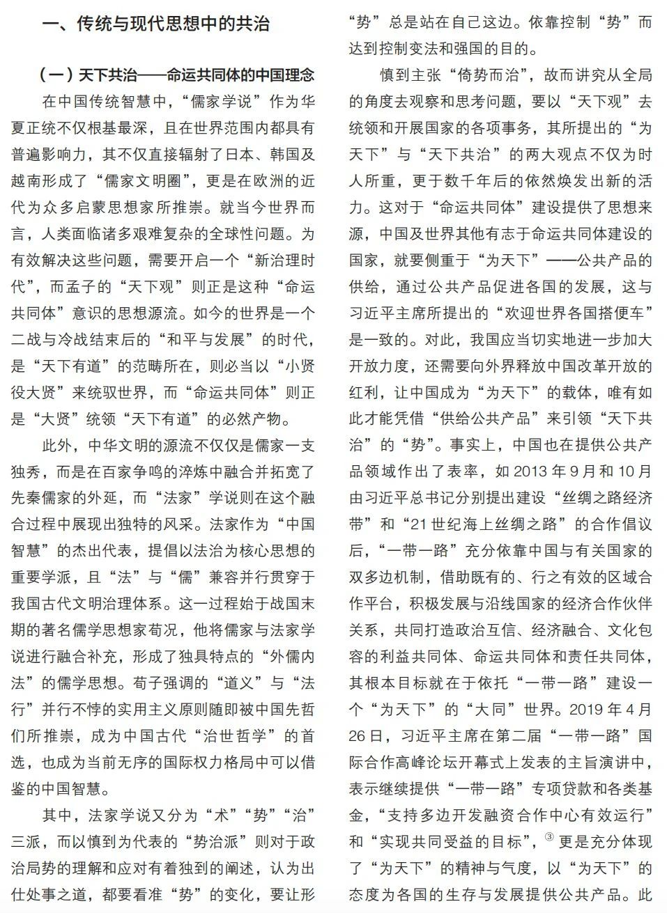本文梳理金砖十国关于人类命运共同体理念的思想渊源,探讨各国传统文化中与该理念的契合点,为金砖国家交流合作提供思想基础。文章将十个国家命运共同体思想基础的来源分为三大类别:其一,根植于各国传统与现代思想中的共治理念,分别包含基于“天下共治”的中国理念、“聚异统一”的俄国智慧、以“公正美学”为内核的巴西艺术;其二,成长于部落文化中的共商理念,包含“人外无人”的南非精神、“部落共商”的阿联酋原则、“多元共存”的埃塞主张;其三,共生于宗教文化的合一理念,包含“梵我同一”的印度信仰、“人主合一”的沙特境界、“来世永恒”的埃及信念以及“政教合一”的伊朗景观。通过梳理发现,在金砖十国思想文化深处,均蕴含着人类命运共同体思想内涵,即共商、共建、共享理念。这既是金砖十国文明绵延存续的强大精神力量来源,也是金砖组织及“全球南方”合力推动全球治理变革的思想基础。