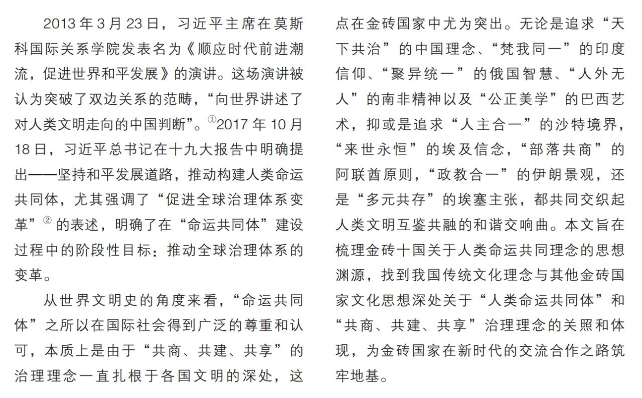 关键词:金砖国家;命运共同体;共商、共建、共享
