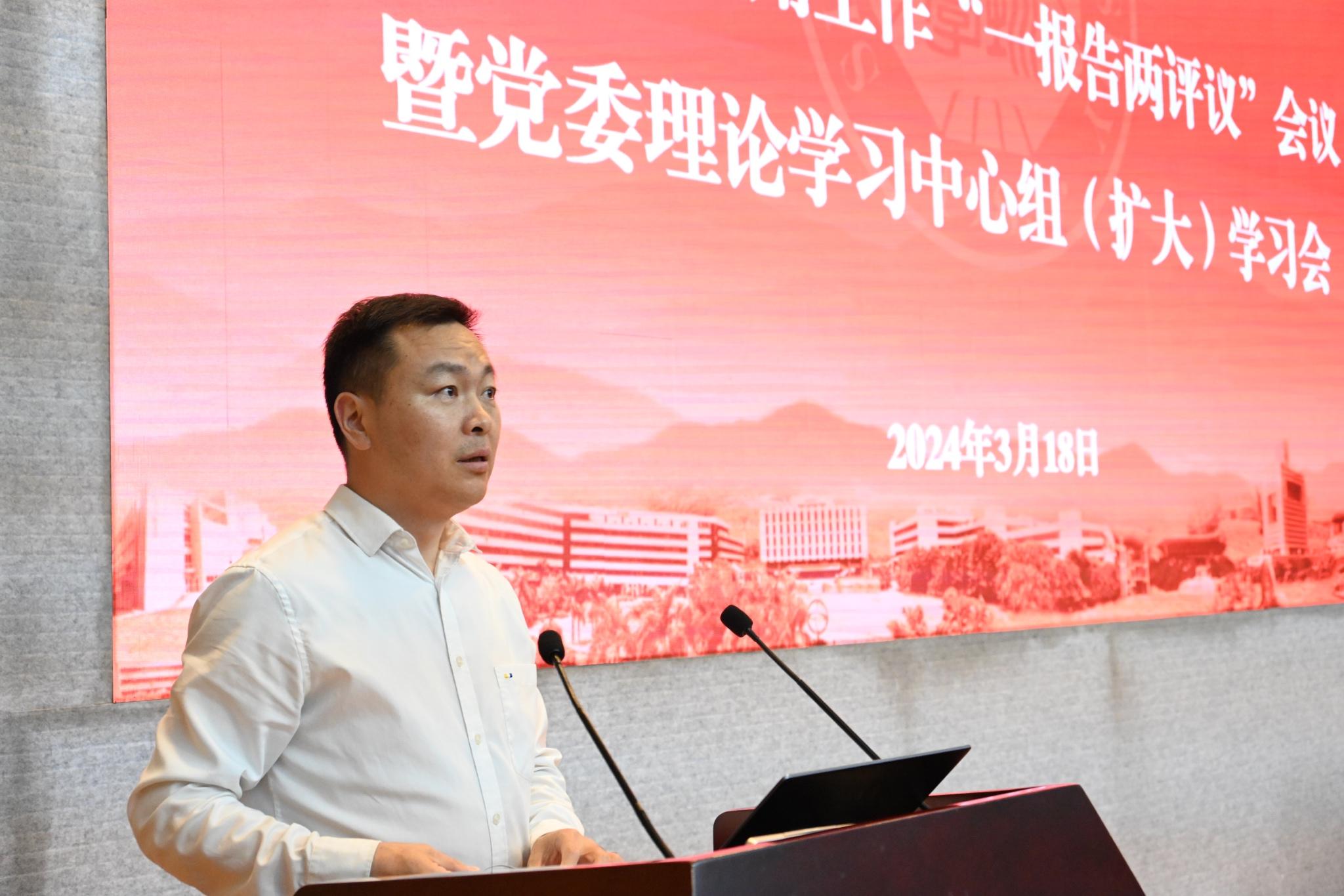 3月18日,乐竞平台2023年度干部选拔任用工作“一报告两评议”会议暨党委理论学习组(扩大)学习会在汇星楼报告厅召开。全体在家校领导、全体中层正职、主持工作副职和党员群众代表参加会议,党委副书记吴报水主持会议。