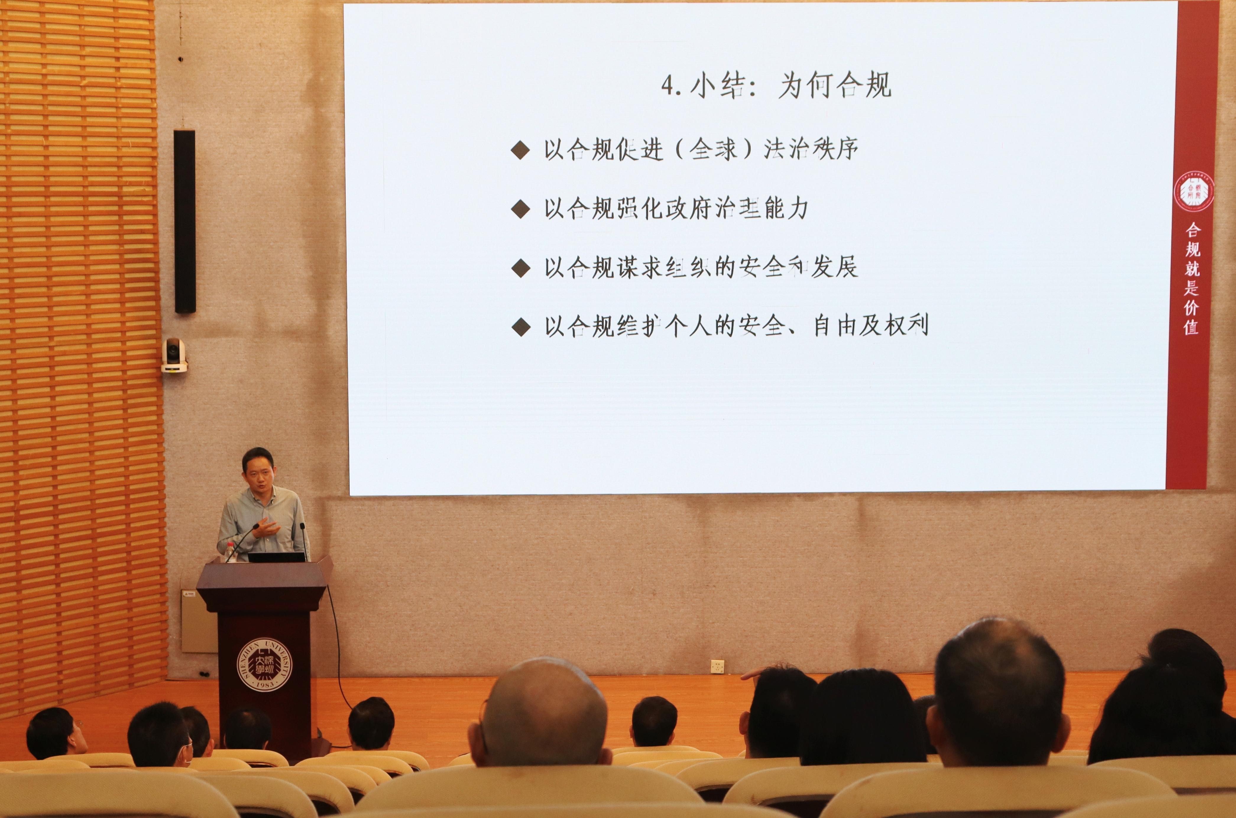 在党委理论学习中心组(扩大)学习会上,法学院副院长、合规研究院执行院长叶海波教授作《合规建设的理论与实践》专题报告,从合规建设的时代趋势、合规的案例认识、何谓合规、为何合规、如何合规等方面进行阐述和讲解。